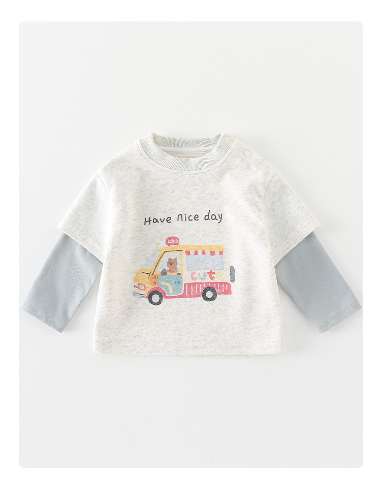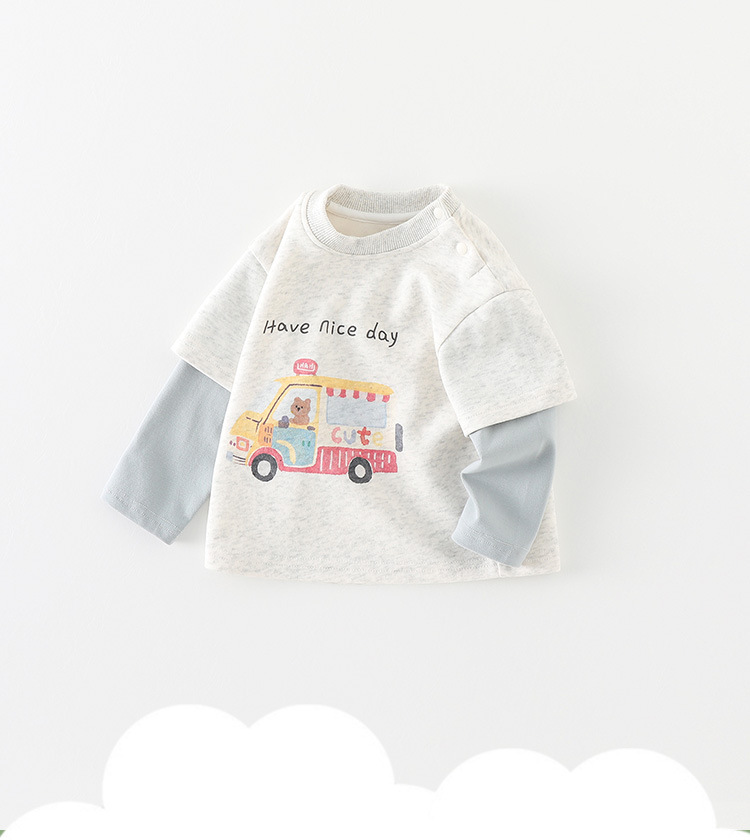 어린이 티셔츠 2025 봄옷 남성 아기 만화 가짜 투피스 베이스 셔츠 유아 올 매치 긴팔 의상 카테고리 A