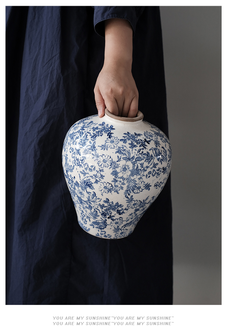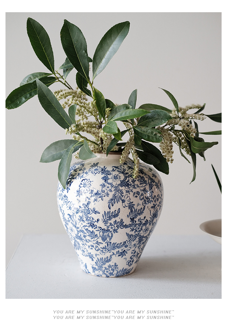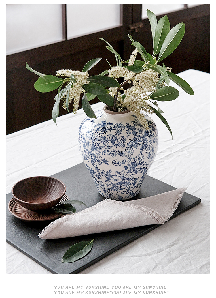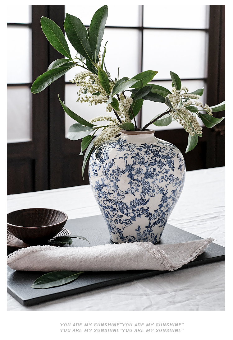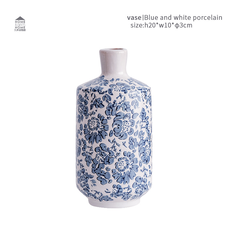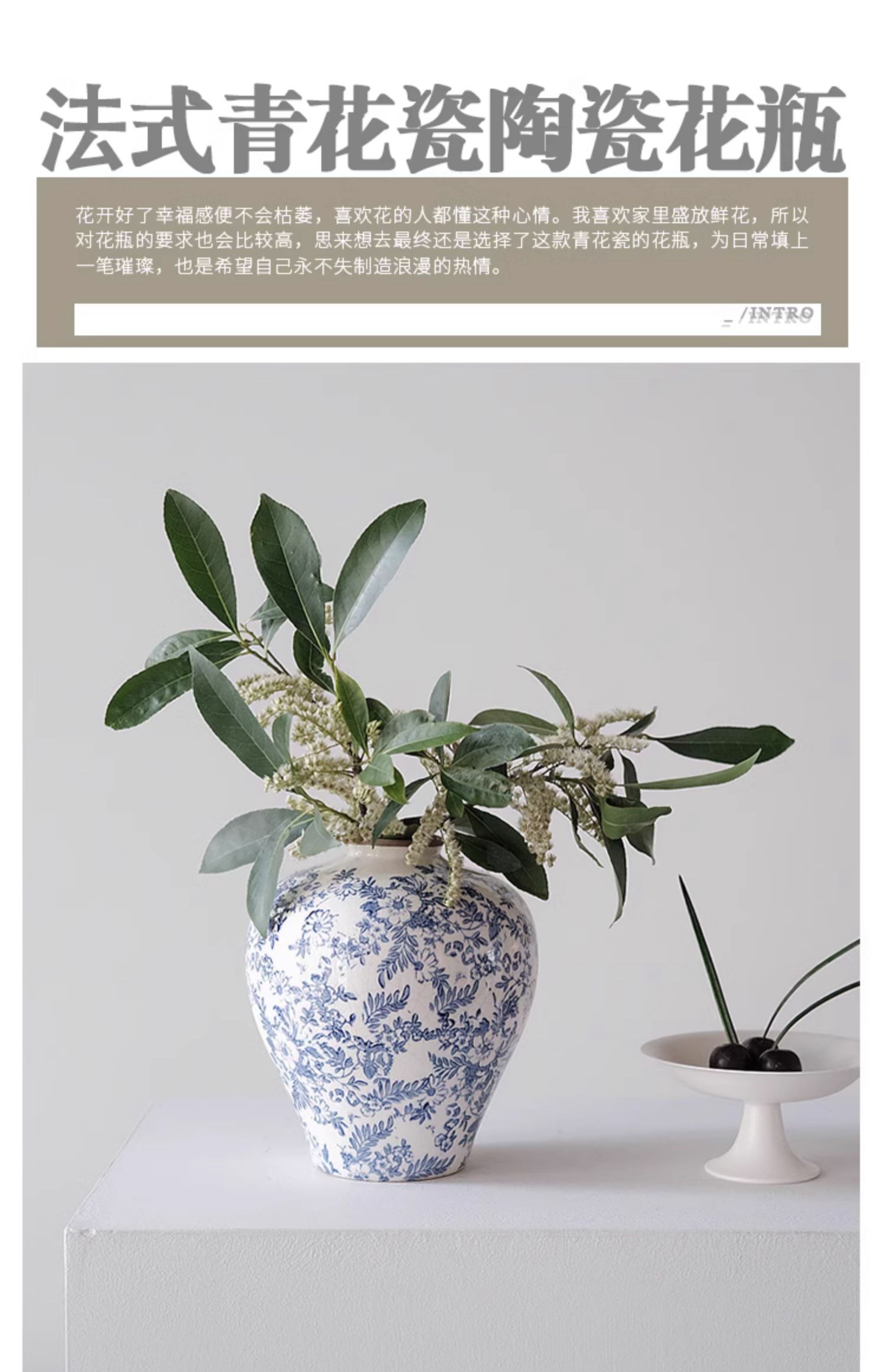 긴 동반 프랑스 복고풍 세라믹 꽃병 파란색과 흰색 도자기 수경 꽃 장식품 거실 데스크탑 장식 고급 감각스토어 가기