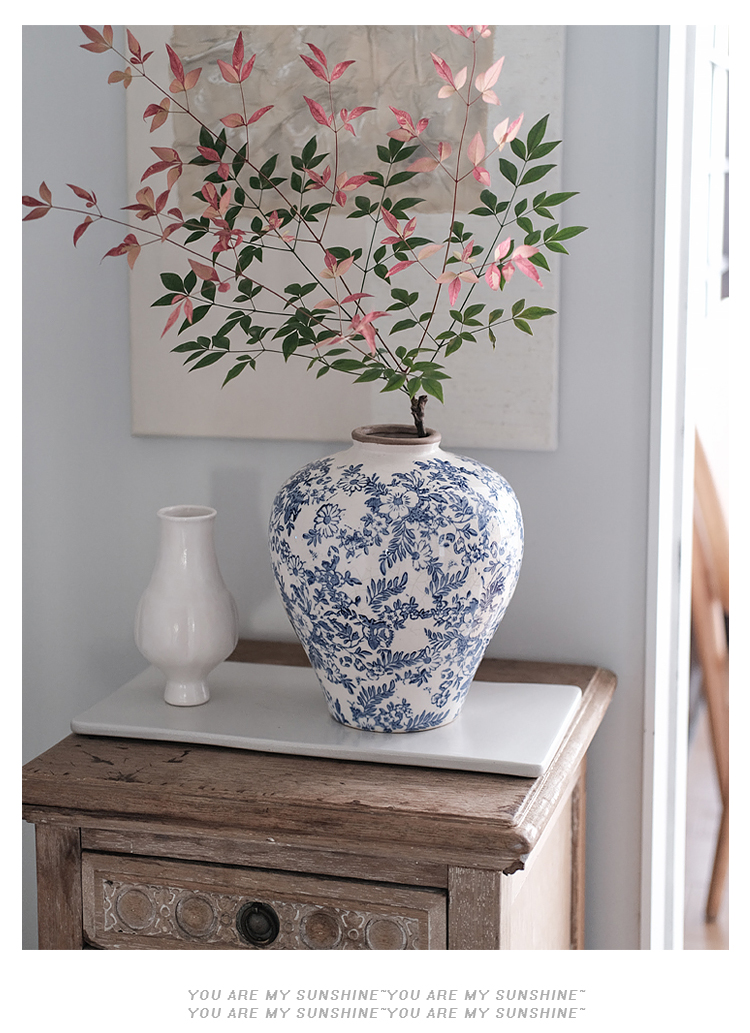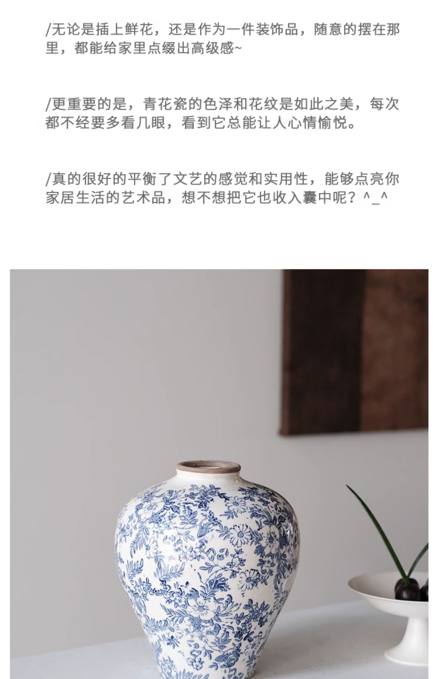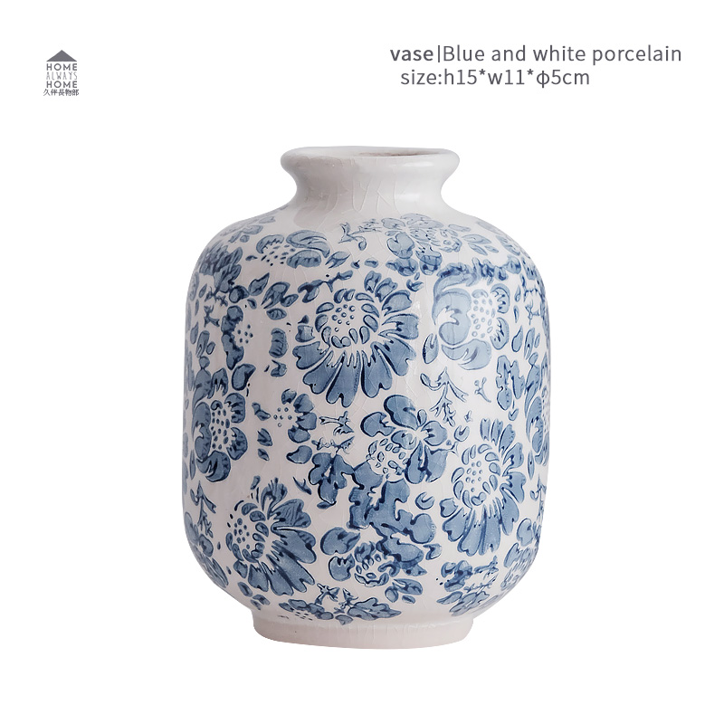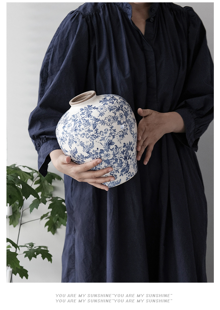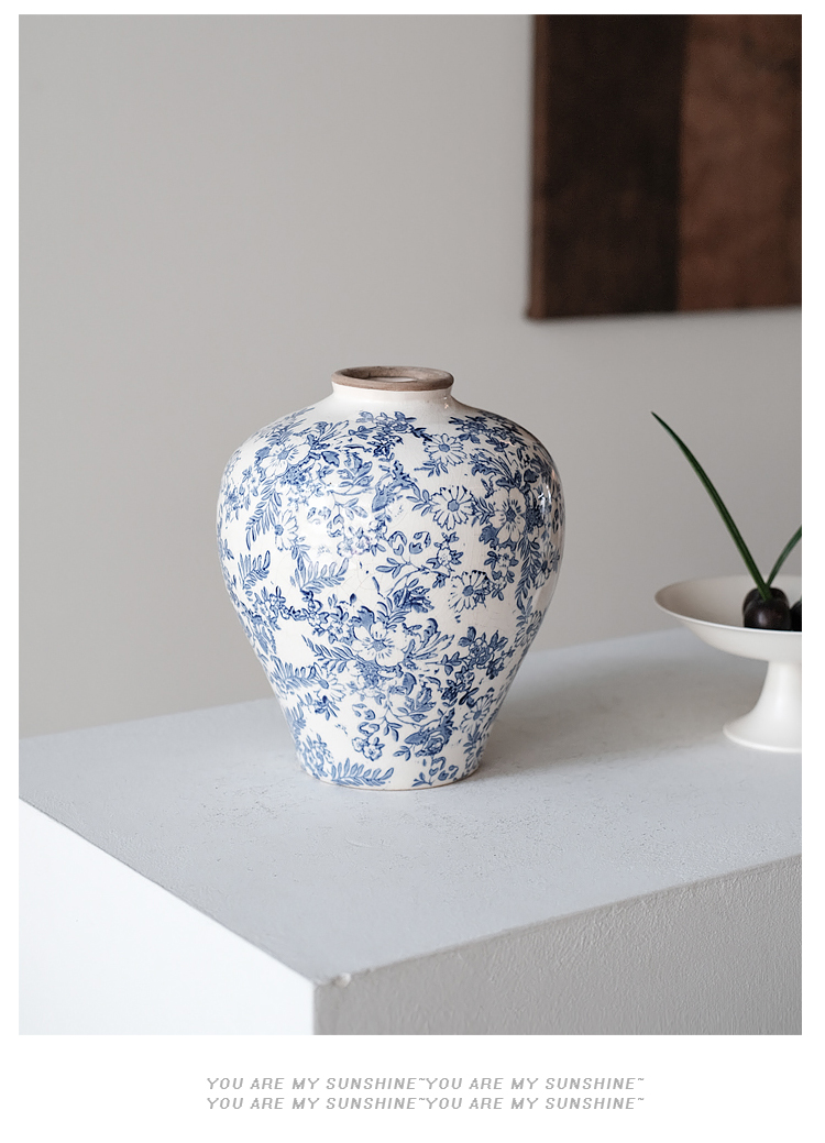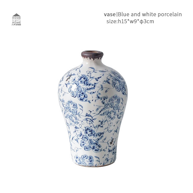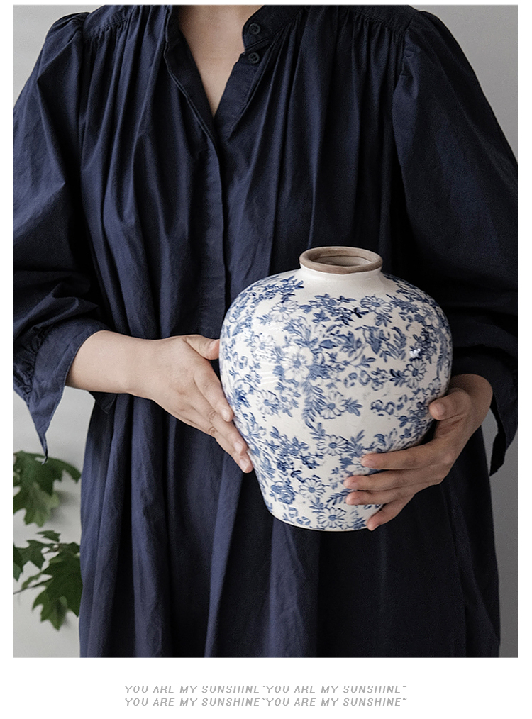 긴 동반 프랑스 복고풍 세라믹 꽃병 파란색과 흰색 도자기 수경 꽃 장식품 거실 데스크탑 장식 고급 감각스토어 가기