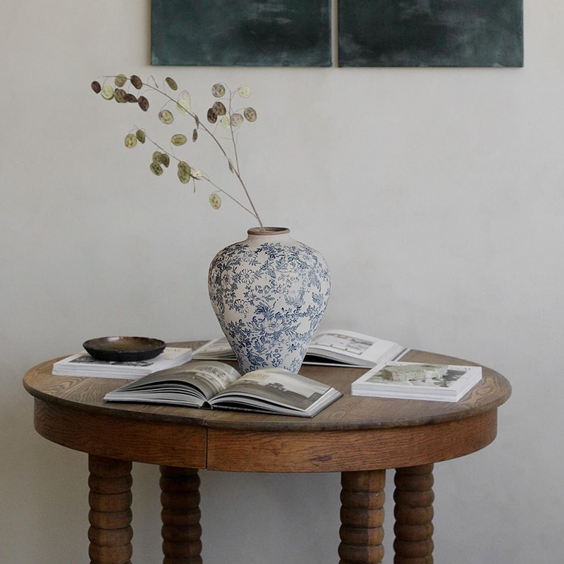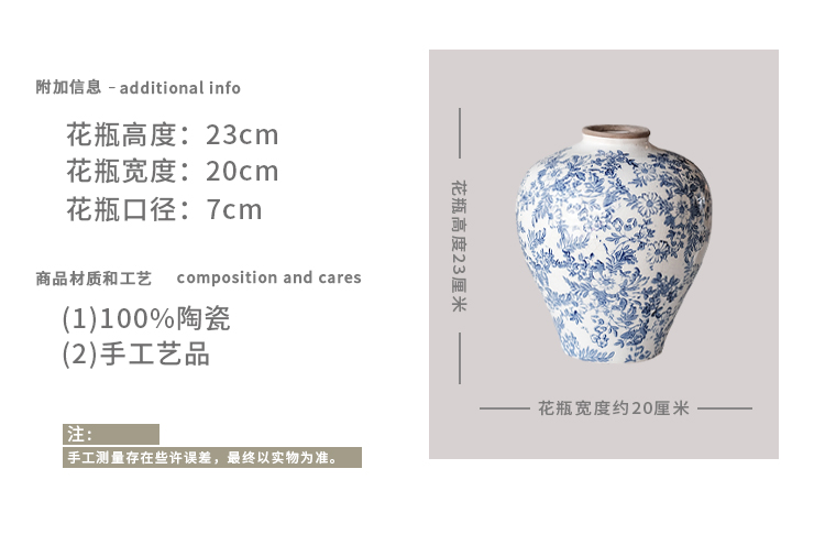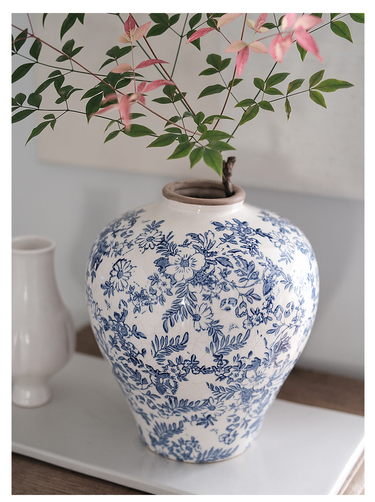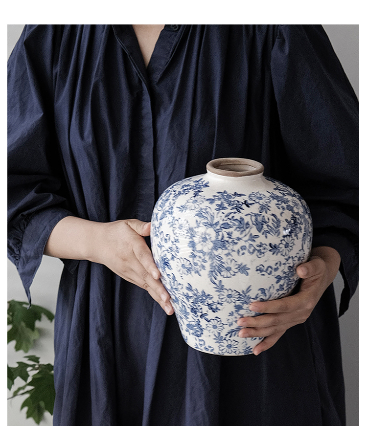 • 파란색과 흰색 도자기 꽃병 크기: 높이 20cm 너비 20cm