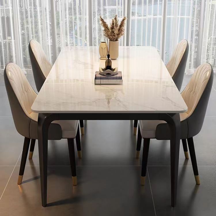 [대변] 현대 심플한 이탈리아식 라이트 록 플레이트 다이닝 테이블과 의자 콤비네이션 라이트 럭셔리 가구 작은 아파트 롱스토어 가기