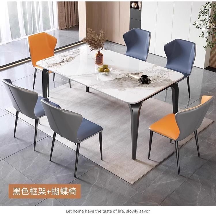 [대변] 현대 심플한 이탈리아식 라이트 록 플레이트 다이닝 테이블과 의자 콤비네이션 라이트 럭셔리 가구 작은 아파트 롱