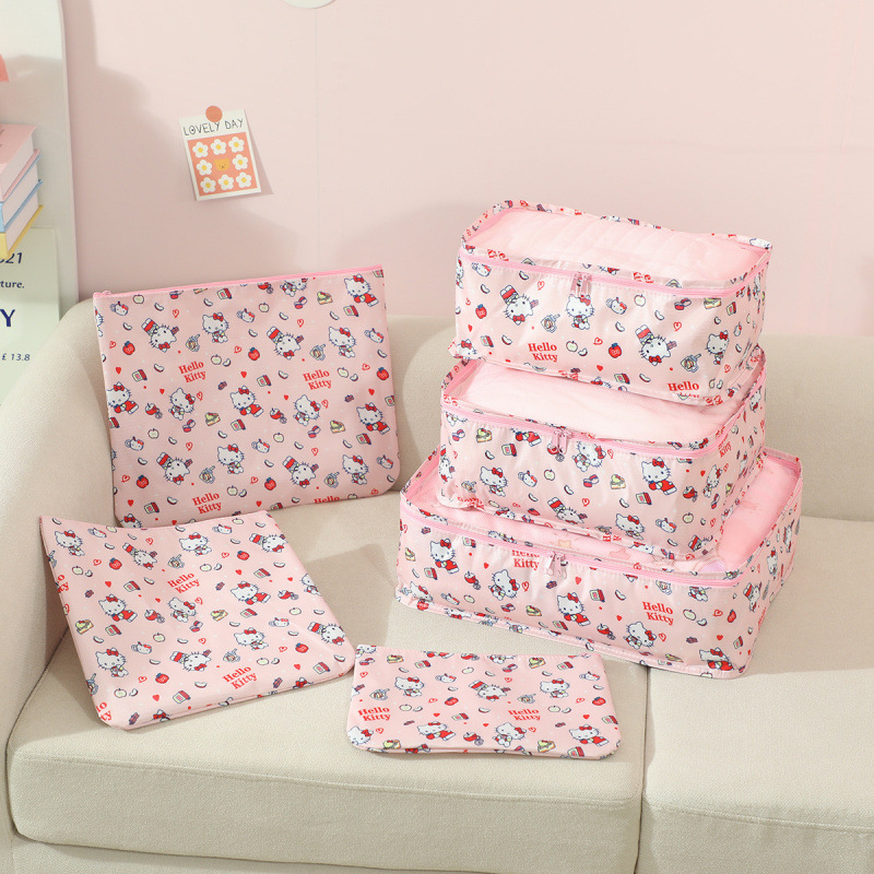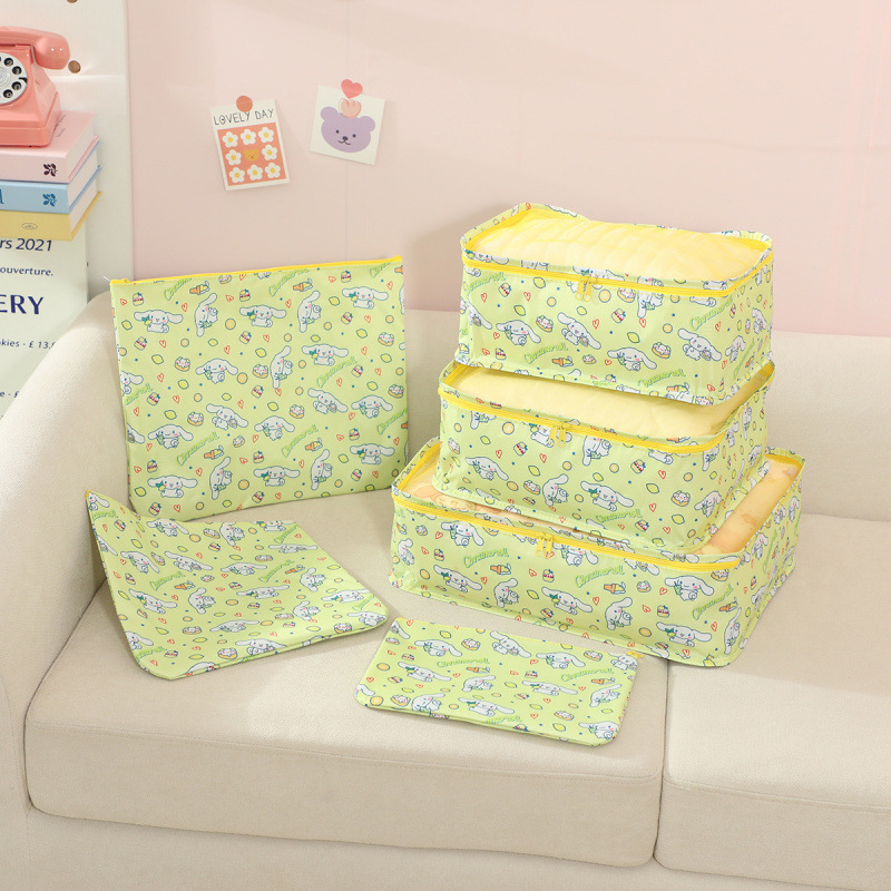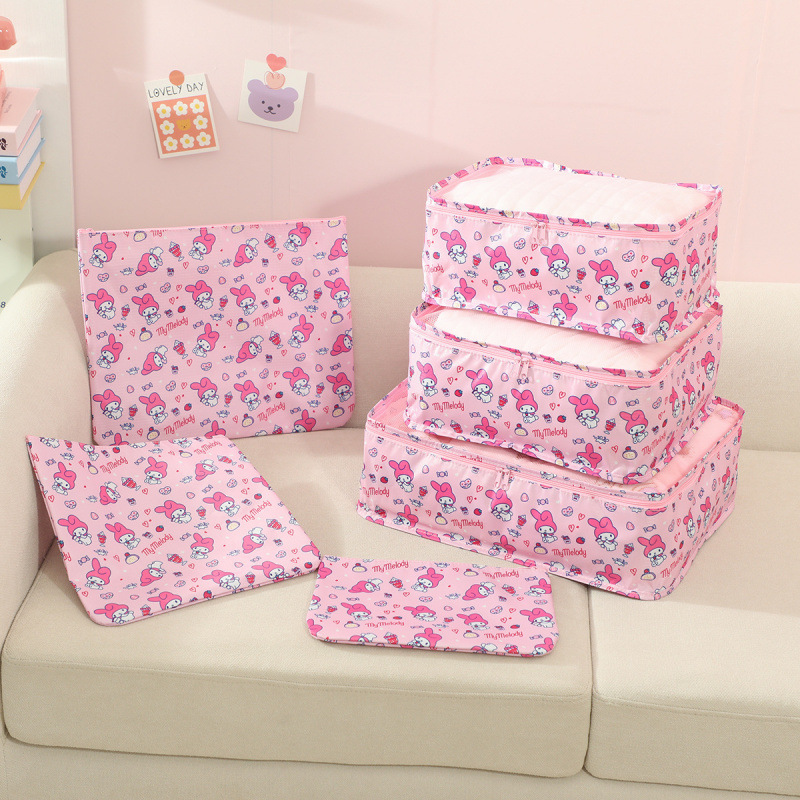 귀여운 만화 옥스포드 천 과일 멜로디 kulomi 접이식 여행 보관 가방 6 조각 의류 보관