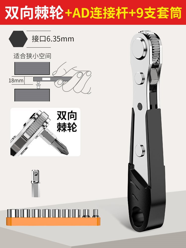 미니 래칫 렌치 육각형 소켓 세트 양방향 전방 및 역방향 팔꿈치 렌치 다기능 크로스 1 워드 소켓