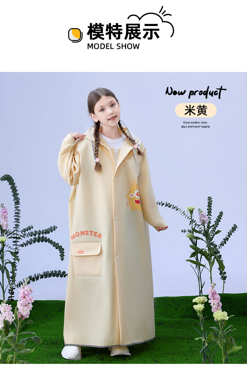 더블 햇 브림 비바람 방지 자전거 판초가있는 3 차원 오픈 스쿨 백과 함께 소년 소녀를위한 어린이 비옷스토어 가기