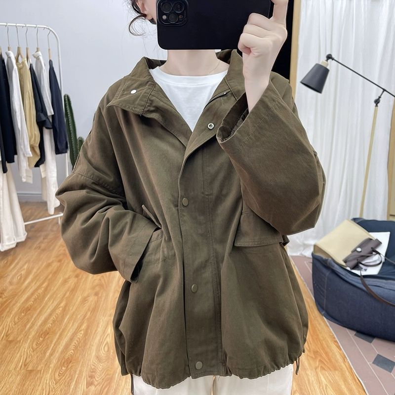 린부 칼라 디자인과 면화 가을 새 코트 여성 린부 재킷 감각 충전 옷 느슨한 탑 올 매치 패션스토어 가기