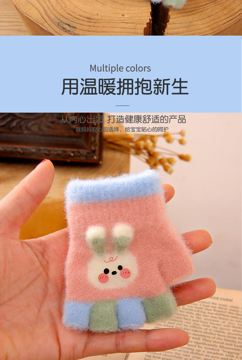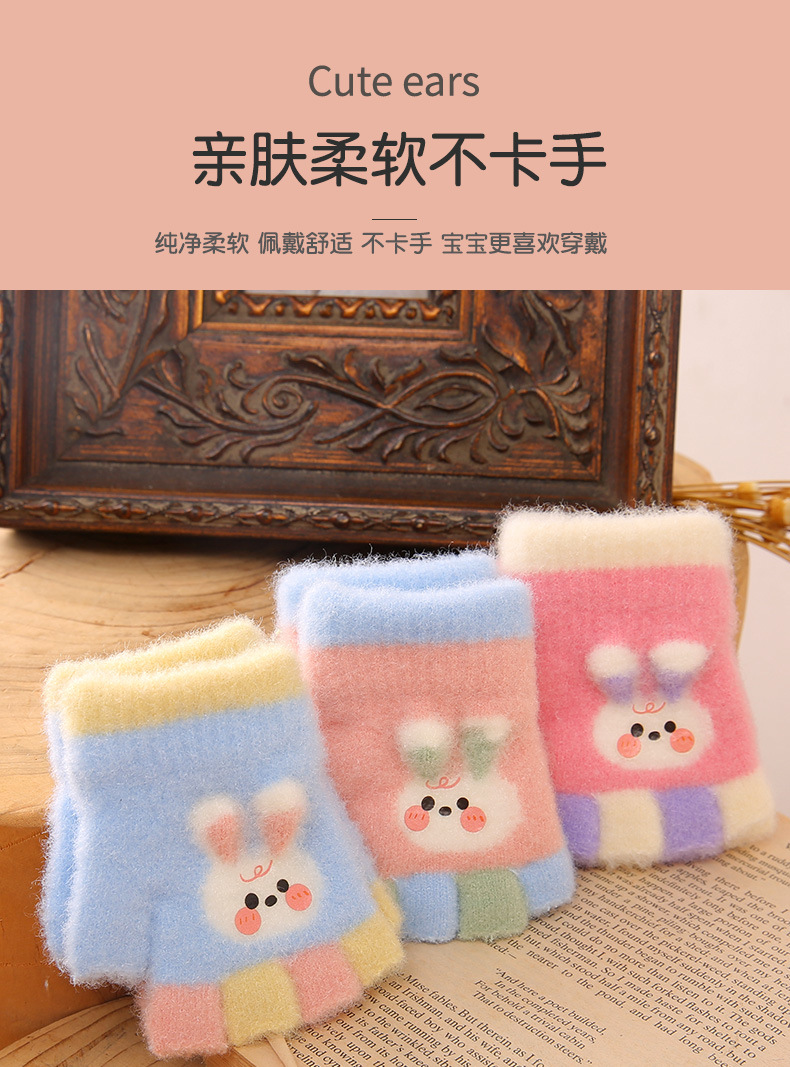 소년 소녀를위한 아기의 장갑 가을과 겨울 니트 따뜻한 귀여운 만화 토끼 아기의 손 양말스토어 가기