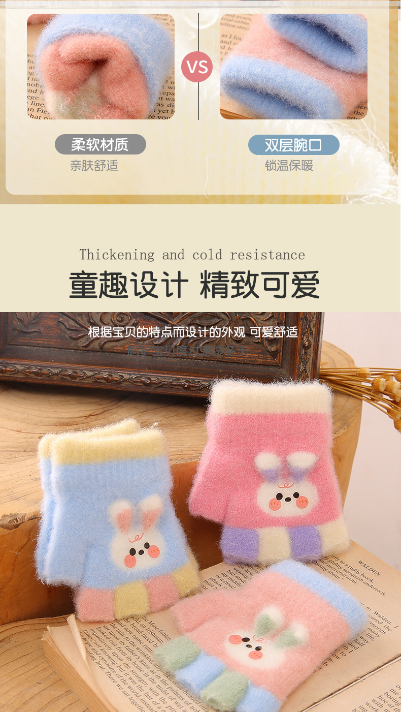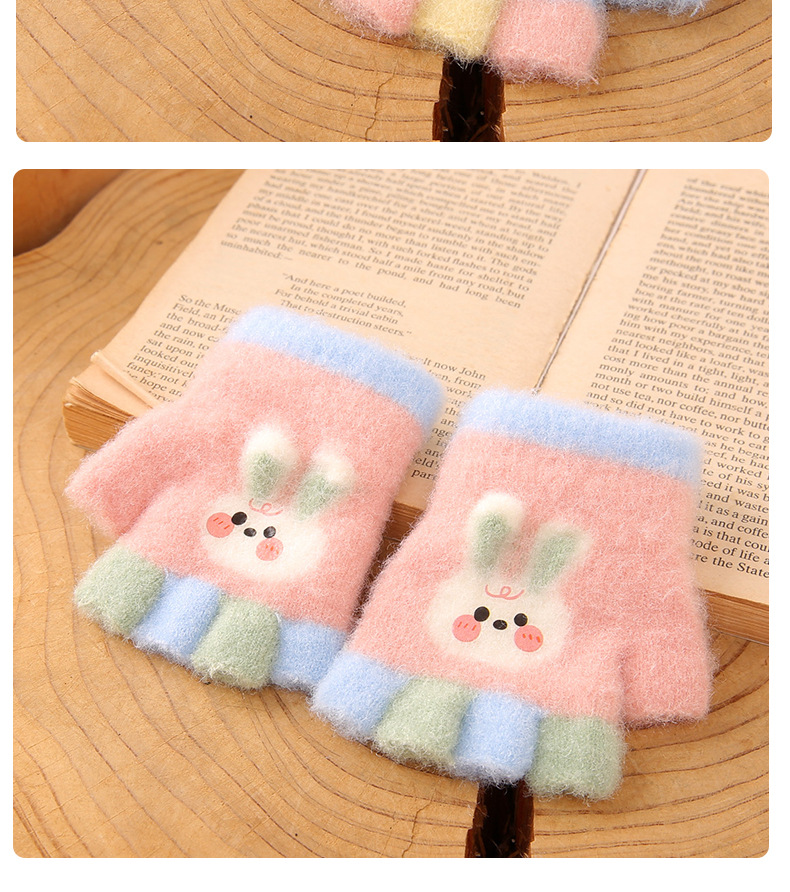 소년 소녀를위한 아기의 장갑 가을과 겨울 니트 따뜻한 귀여운 만화 토끼 아기의 손 양말
