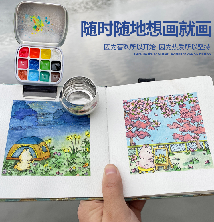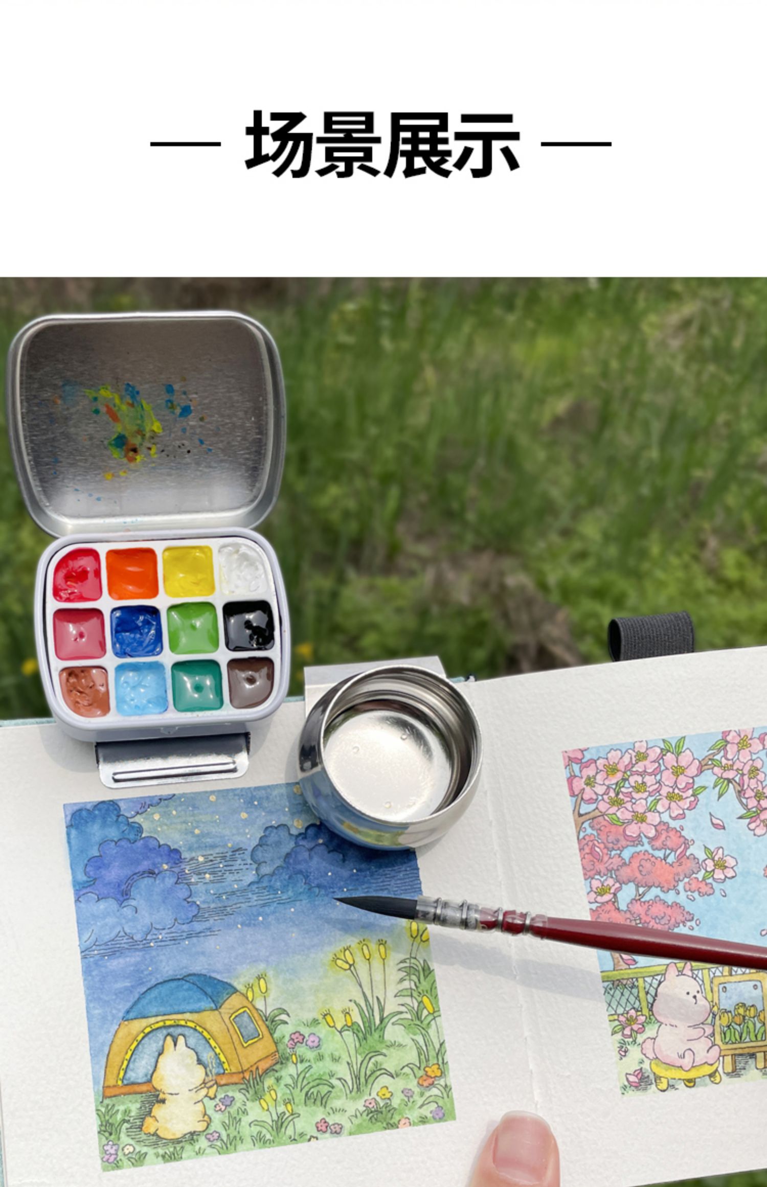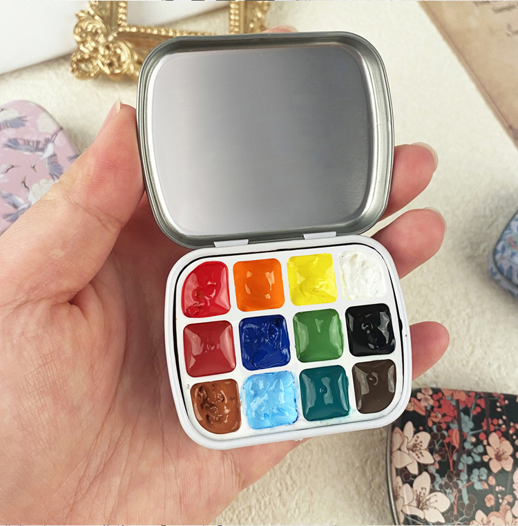 미니 여행 수채화 페인트 상자 캐리 온 수채화 물감 휴대용 상자 수채화 물감 포장 작은 철 상자스토어 가기