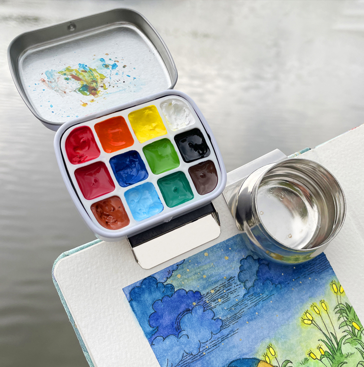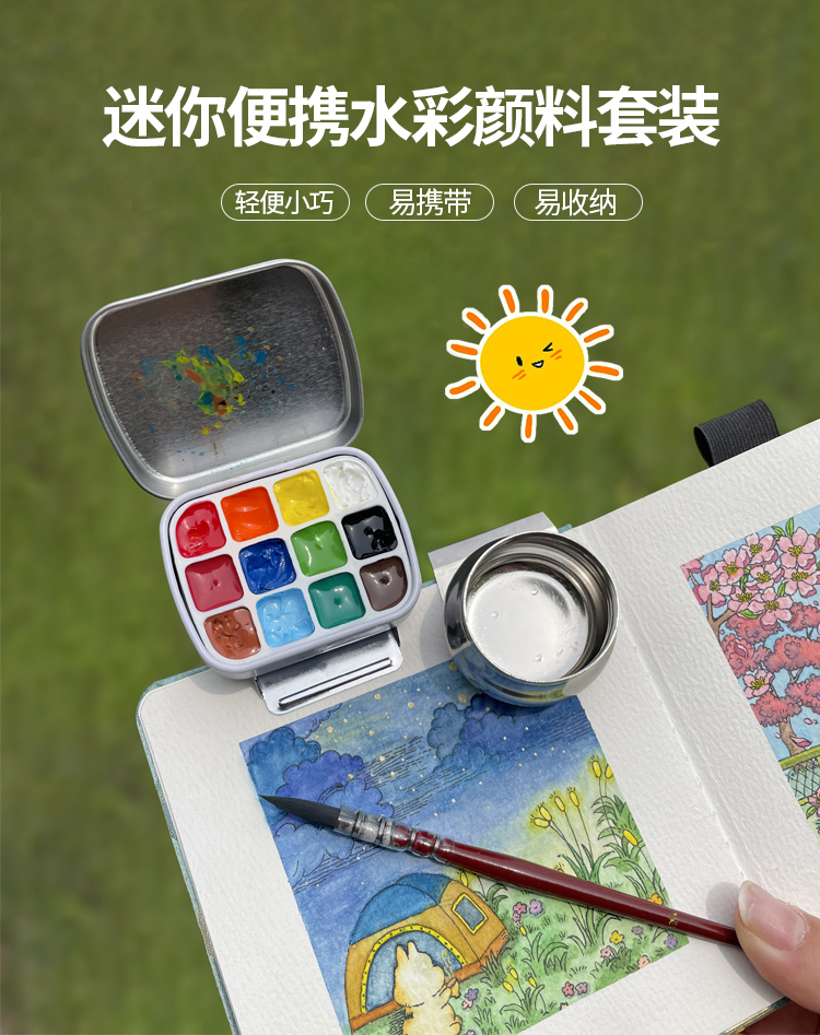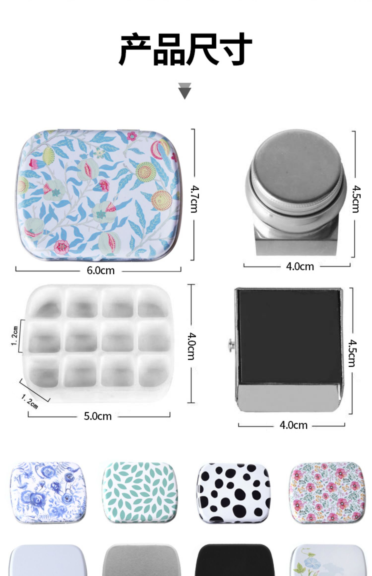 미니 여행 수채화 페인트 상자 캐리 온 수채화 물감 휴대용 상자 수채화 물감 포장 작은 철 상자