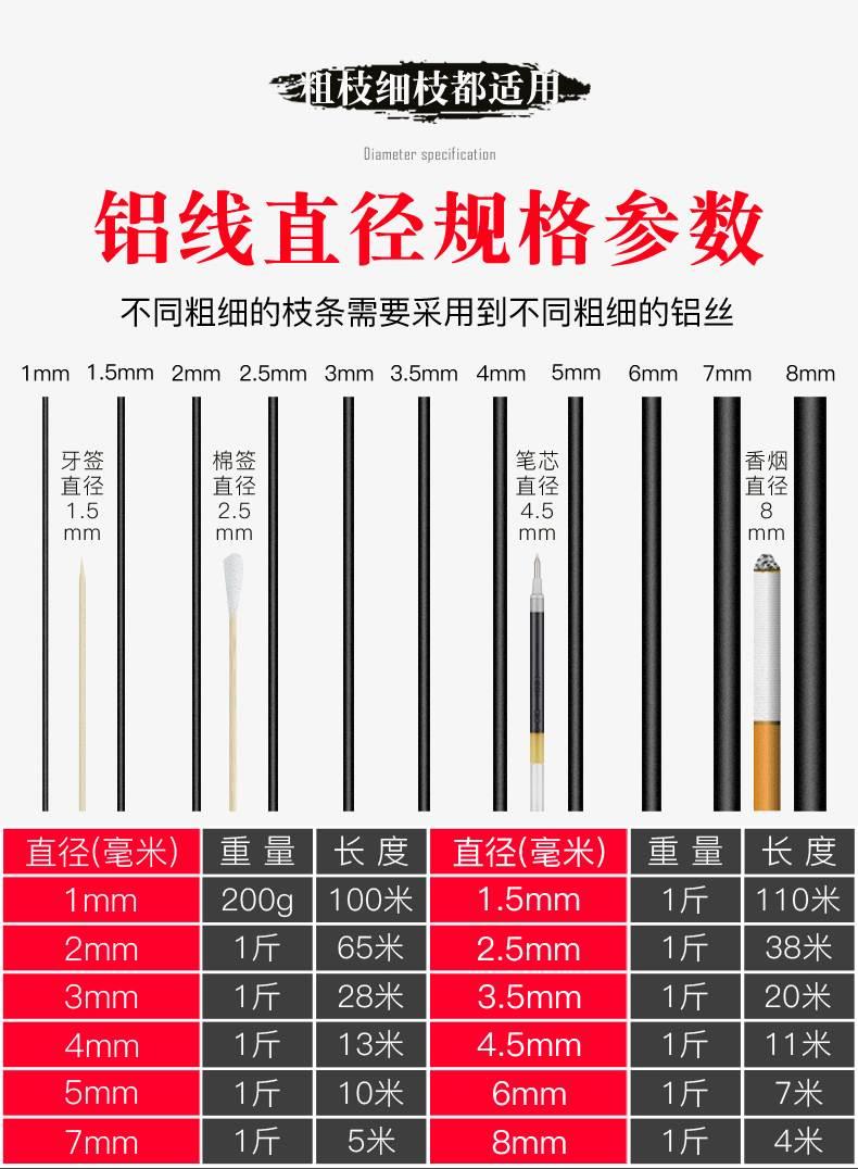 분재 모델링 알루미늄 와이어 알루미늄 와이어 알루미늄 와이어 타이 원예 와이어 꽃 Luohan 소나무 가지 설정 장치스토어 가기