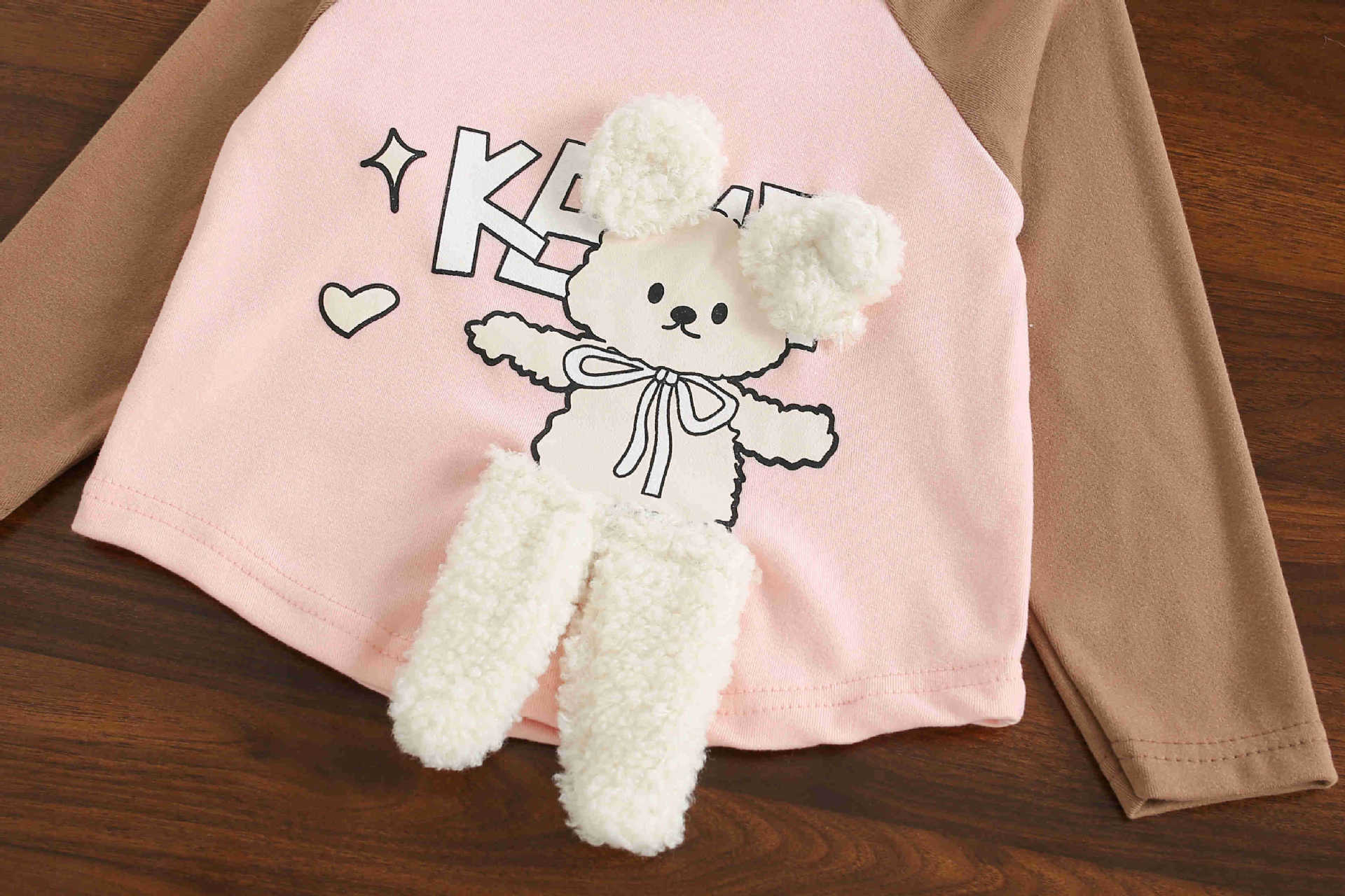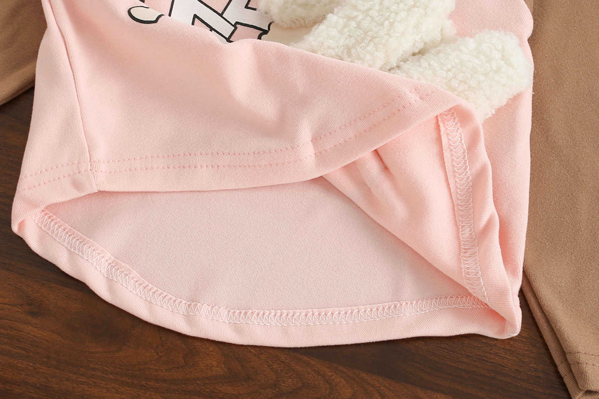 여아 가을 겨울 곰 긴팔 바텀 셔츠, 자수 따뜻한 상의, 여아 라운드넥, 패셔너블한 한국 스타일, 기모 처리되어 따뜻함 유지