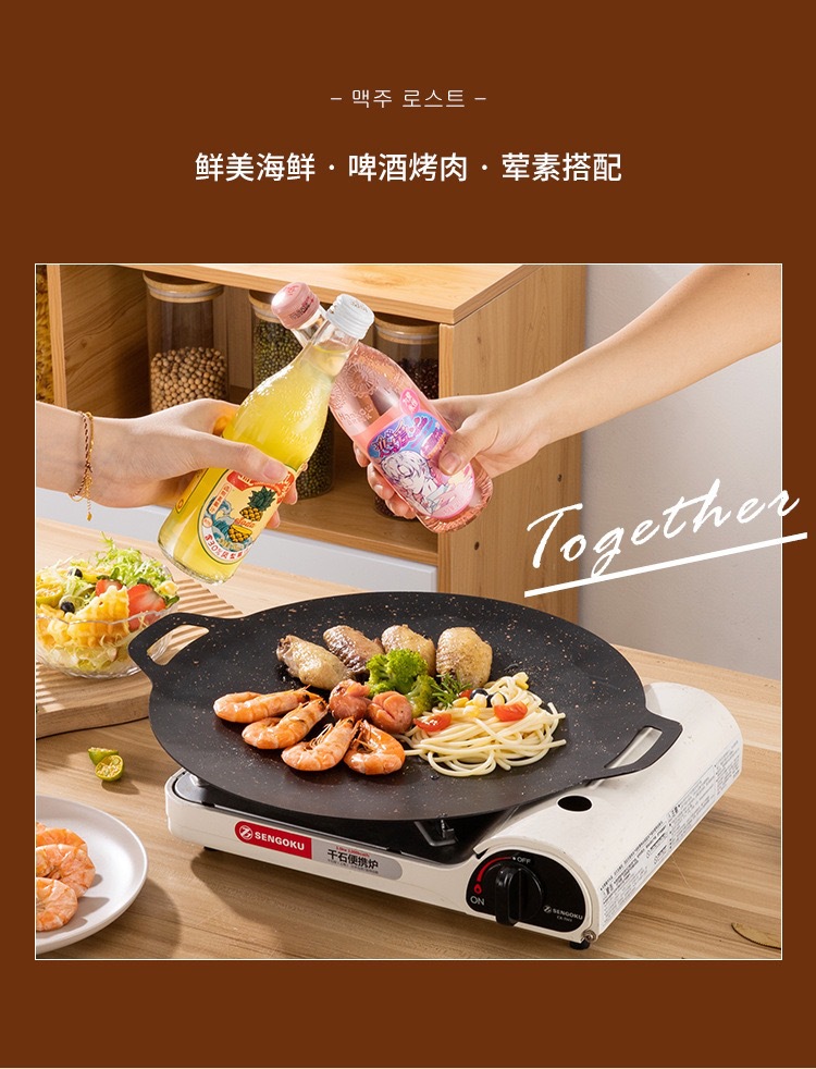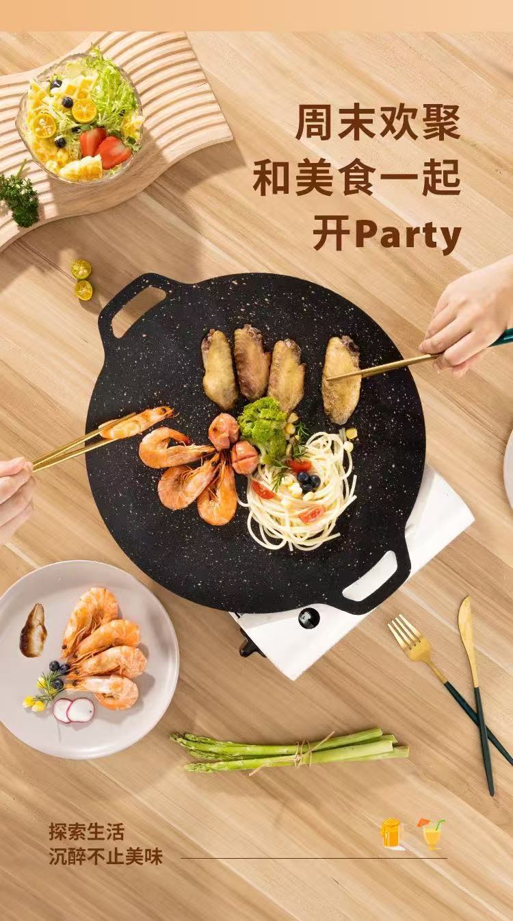 야외 캠핑 가정용 바베큐 플레이트 한국식 그릴 플레이트 라운드 휴대용 유니버설 계란 플레이트 철판 이중 귀 바베큐 플레이트스토어 가기