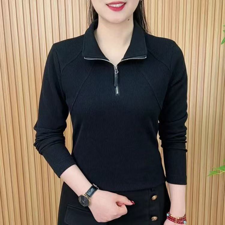 2025 년 봄 새로운 패션 외국 스타일 반 지퍼 오픈 칼라 단색 캐주얼 긴 소매 티셔츠 재킷 여성스토어 가기