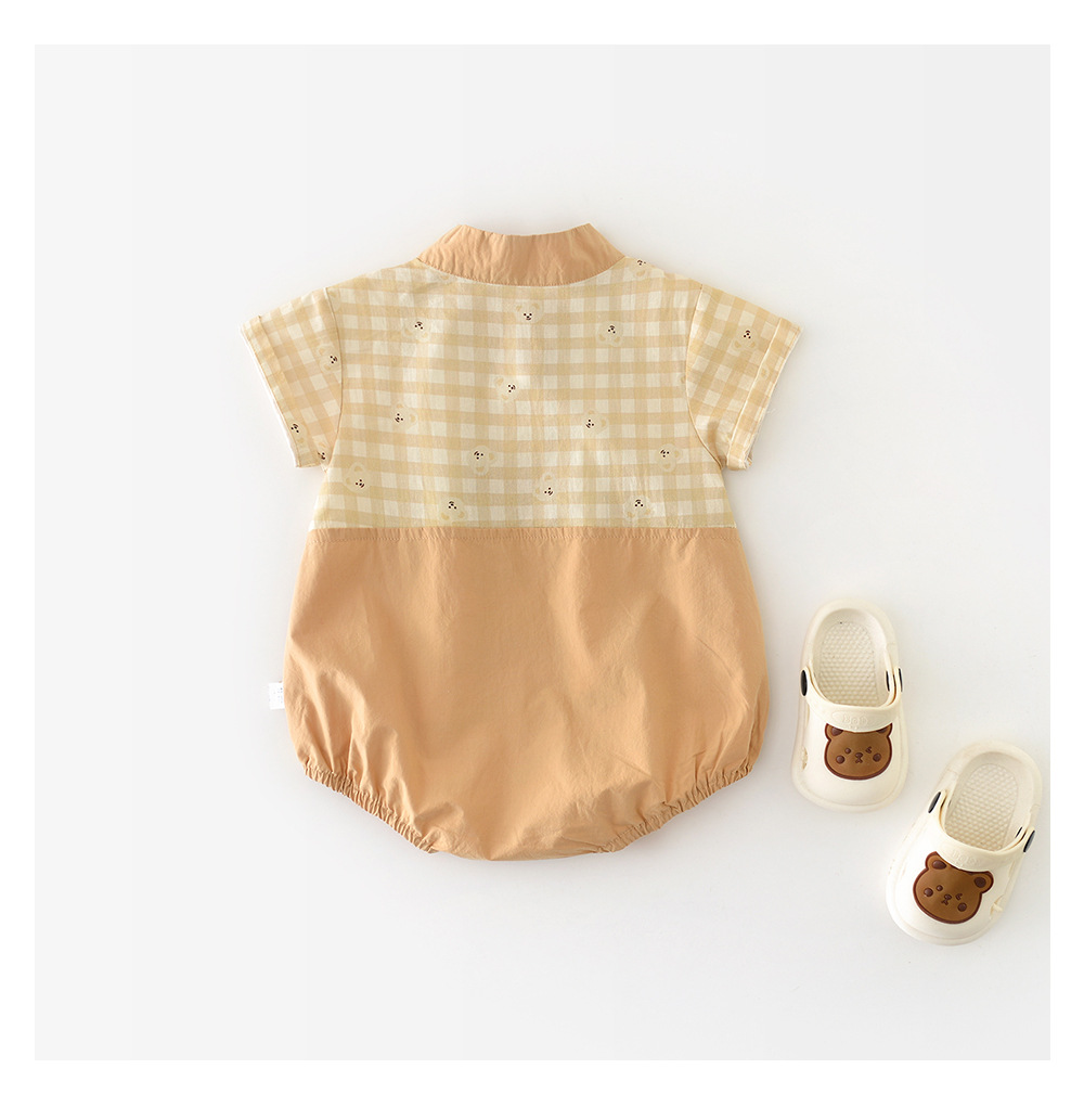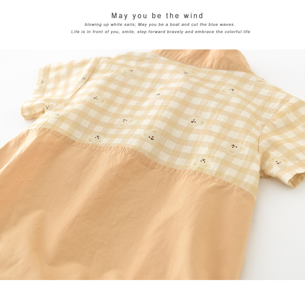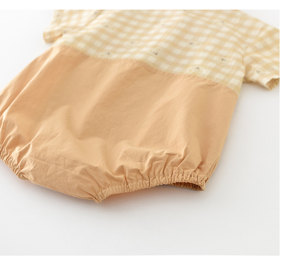 Yue Ji 의류 어린이 한국 스타일 가짜 투피스 가방 방귀 옷 아기와 유아의 노란색과 흰색 격자 무늬 만화 컵스 52716