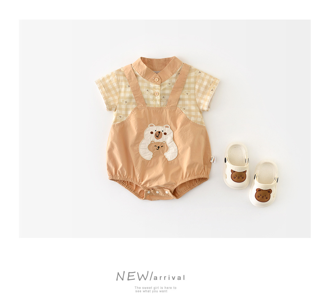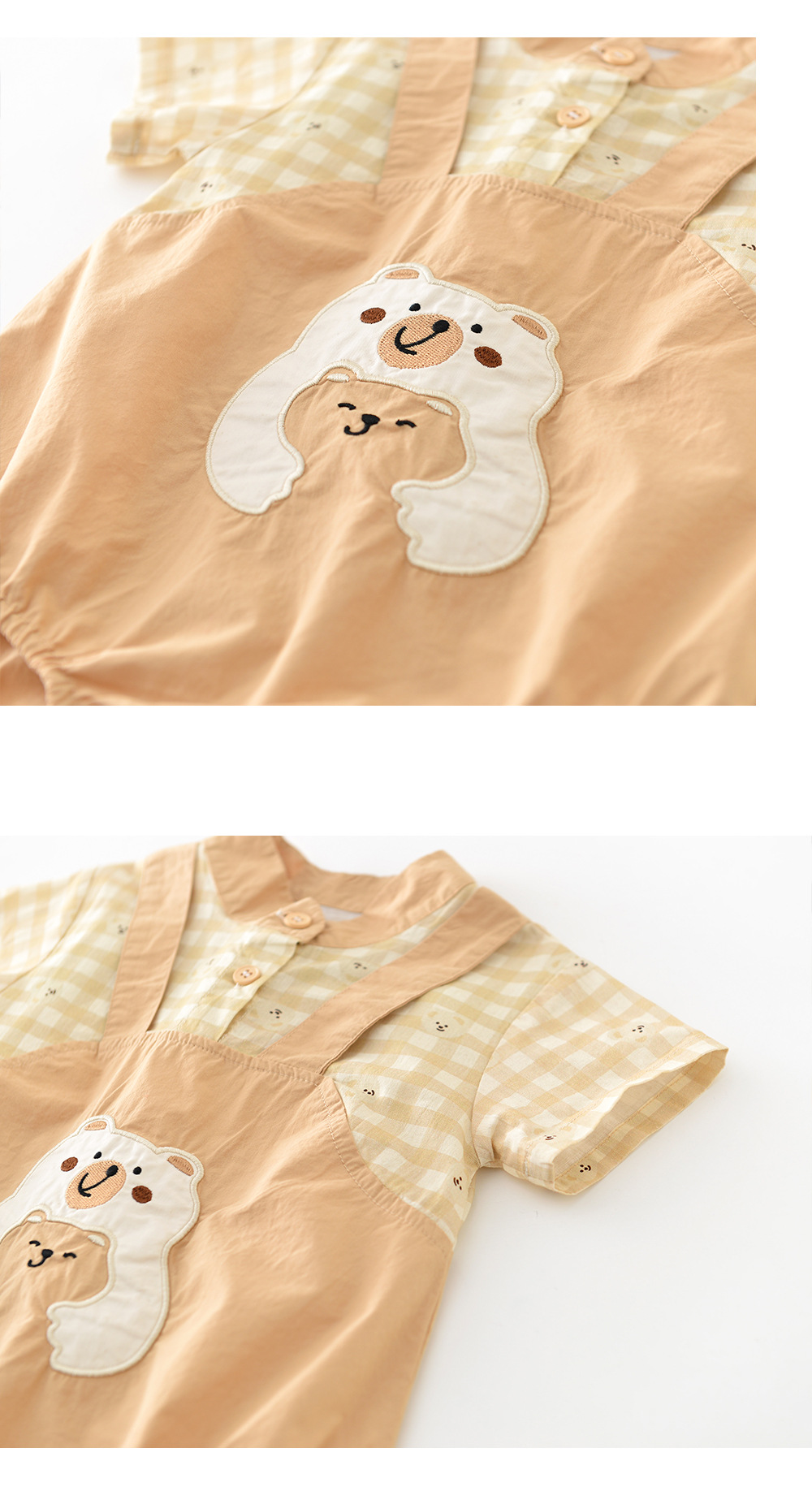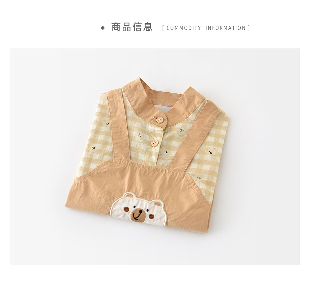 Yue Ji 의류 어린이 한국 스타일 가짜 투피스 가방 방귀 옷 아기와 유아의 노란색과 흰색 격자 무늬 만화 컵스 52716스토어 가기