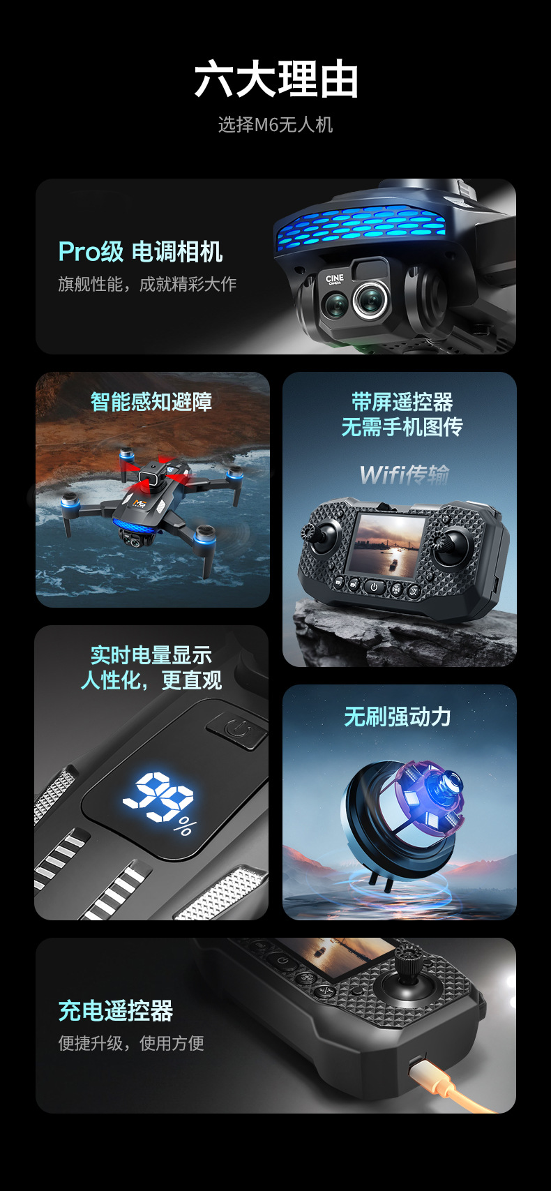 국경 간 M6 브러시리스 화면 제어 UAV 항공 사진 광학 흐름 장애물 회피 항공기 접이식 원격 제어 항공기 대외 무역 장난감
