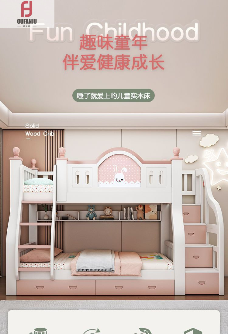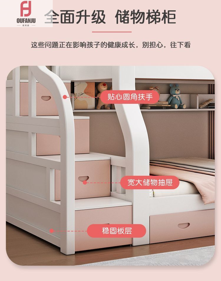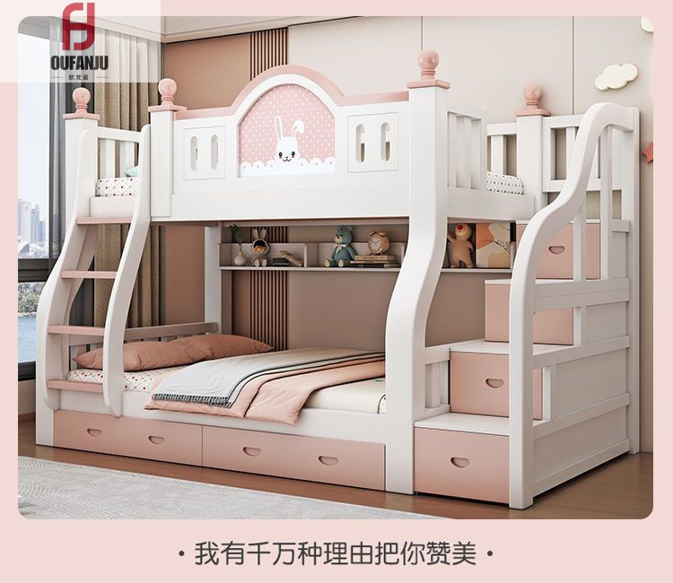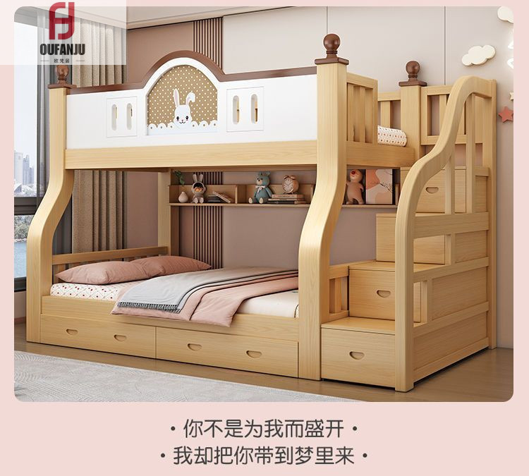 디럭스 프린세스 침대 침실 어린이 침대 두꺼운 단단한 나무 엄마와 아이 침대 아이 침대 낮은 침대 2 층 높은 침대스토어 가기
