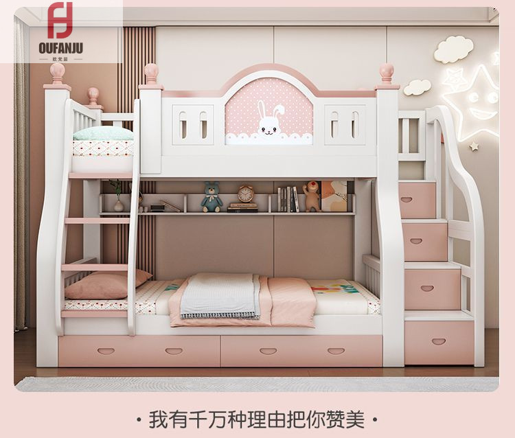 디럭스 프린세스 침대 침실 어린이 침대 두꺼운 단단한 나무 엄마와 아이 침대 아이 침대 낮은 침대 2 층 높은 침대