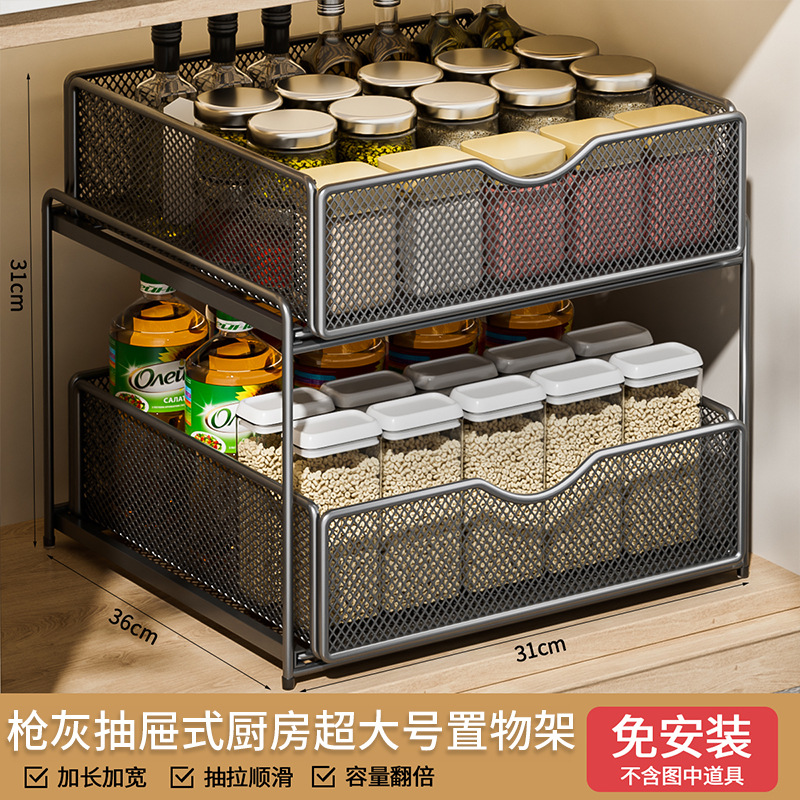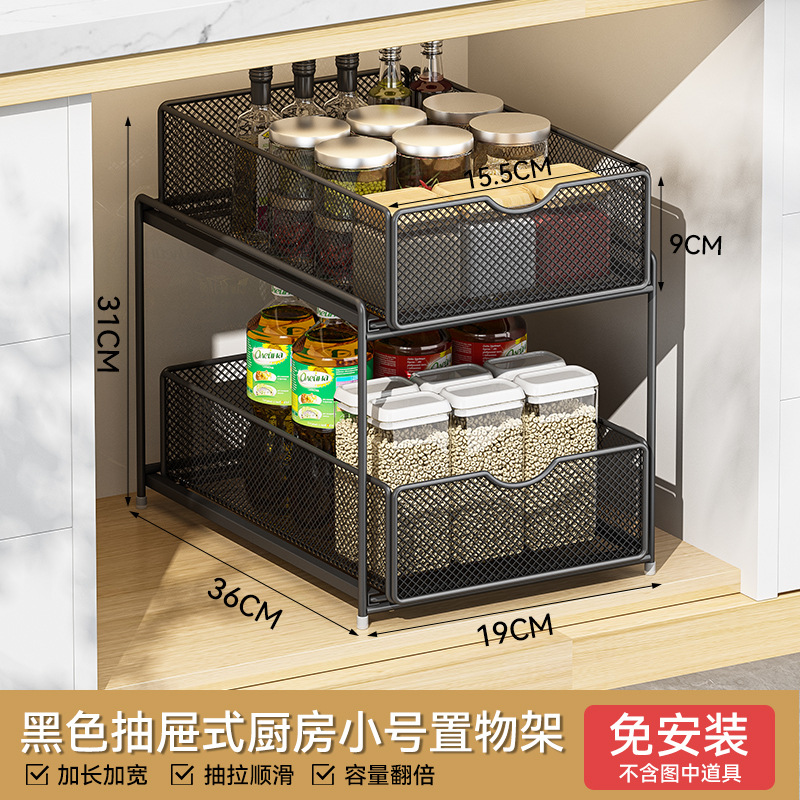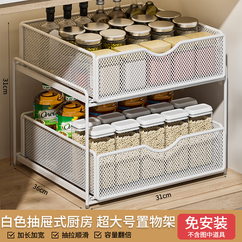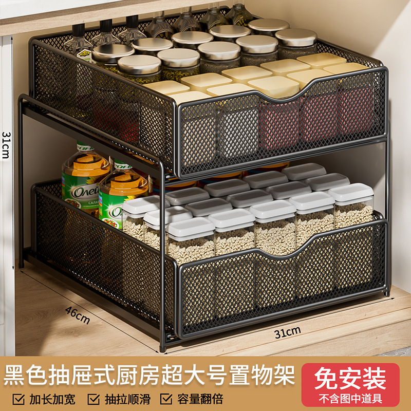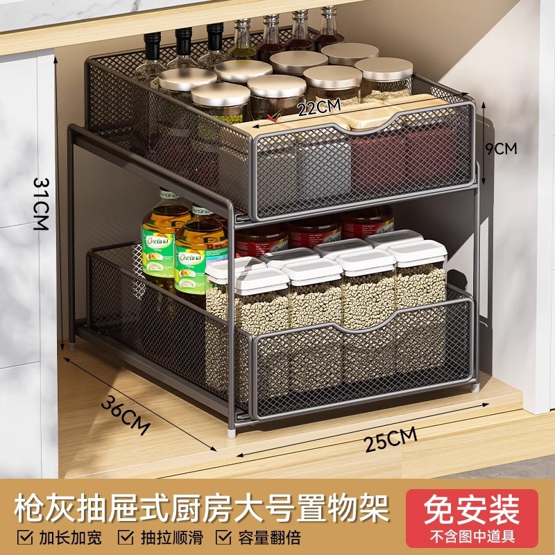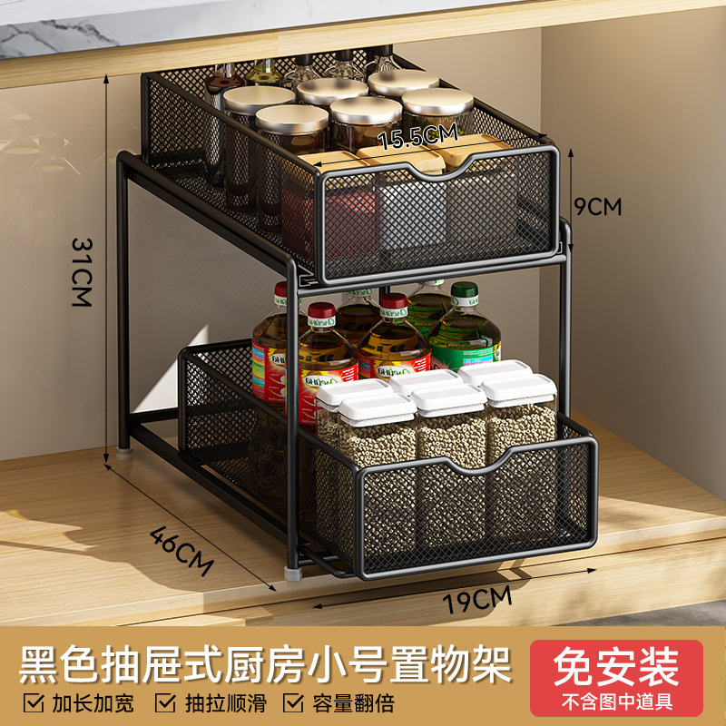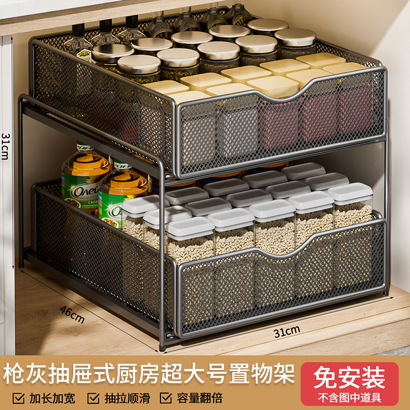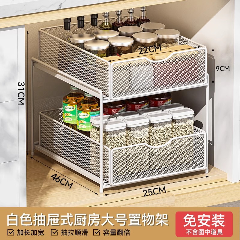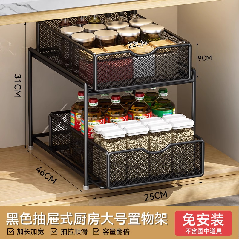 주방 풀아웃 스토리지 랙 캐비닛 계층화 된 선반 더블 레이어 하단 싱크 초딥 서랍 바구니 저장 아티팩트스토어 가기