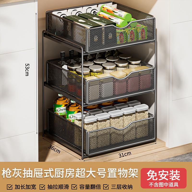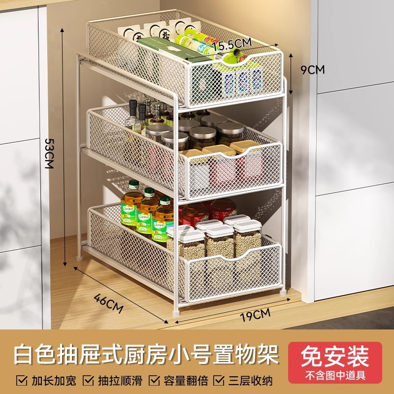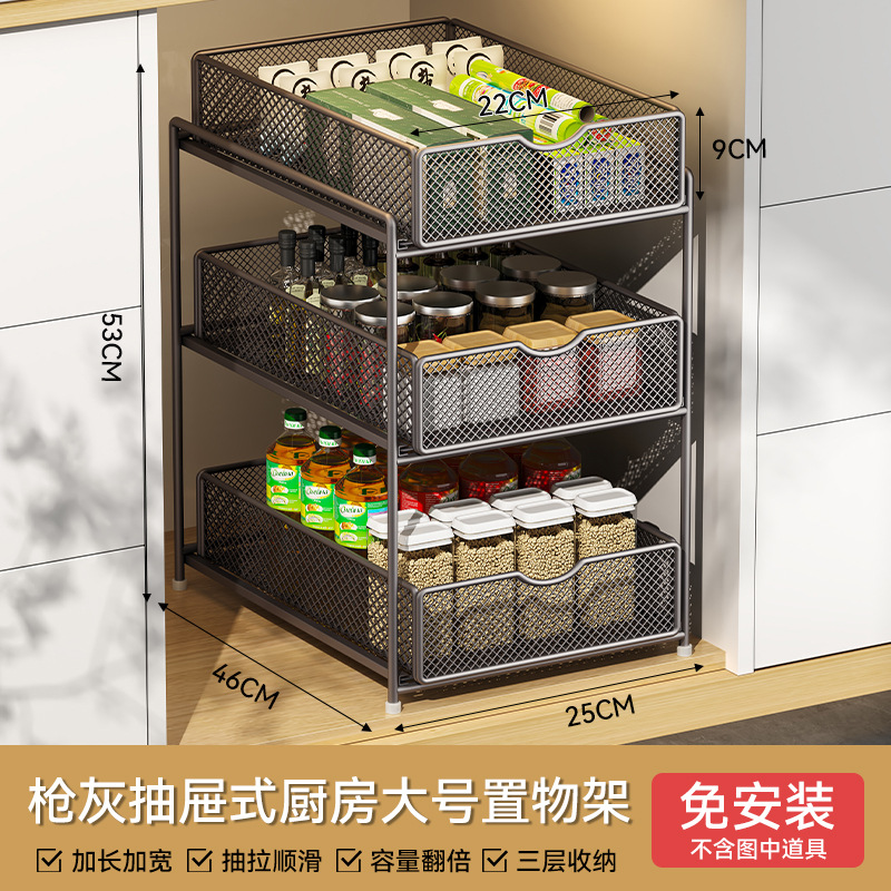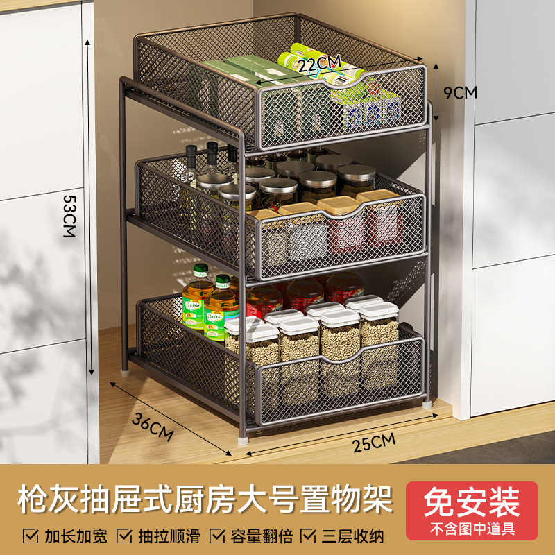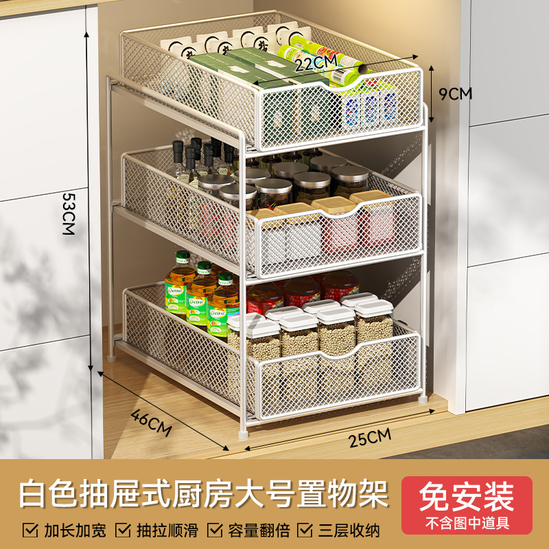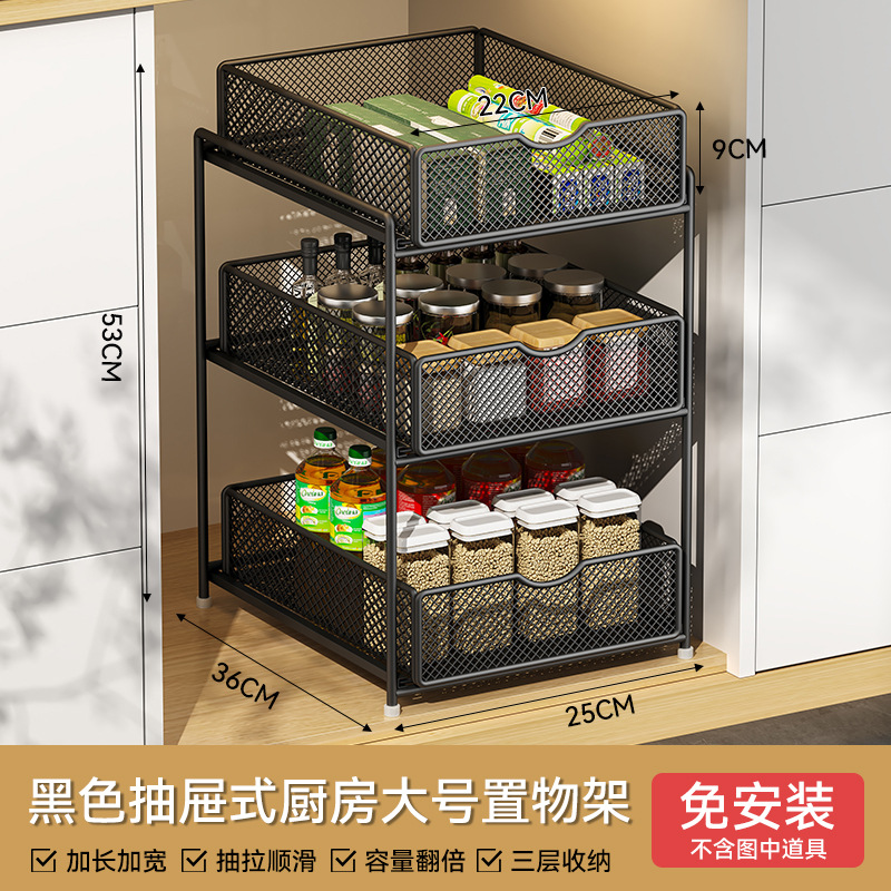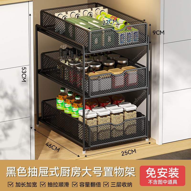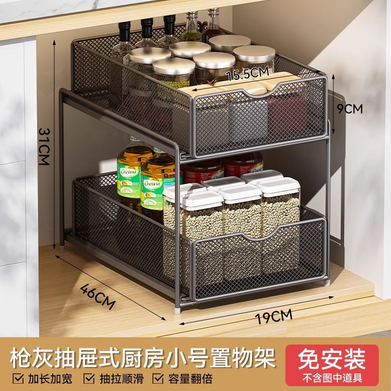 주방 풀아웃 스토리지 랙 캐비닛 계층화 된 선반 더블 레이어 하단 싱크 초딥 서랍 바구니 저장 아티팩트스토어 가기
