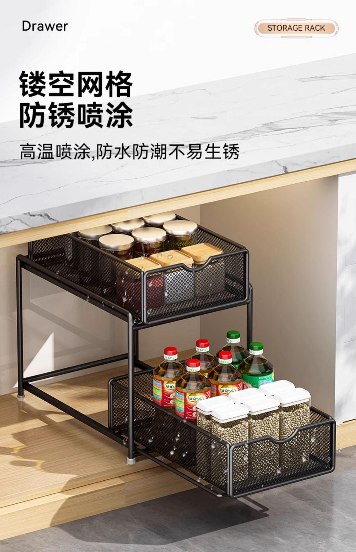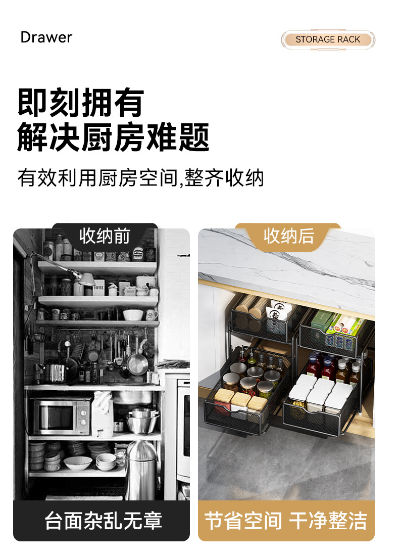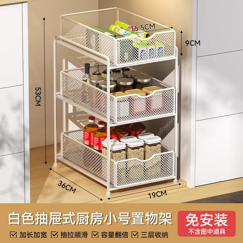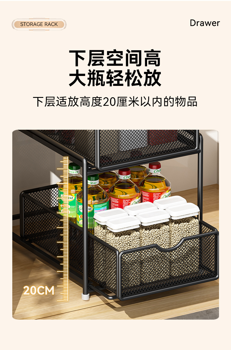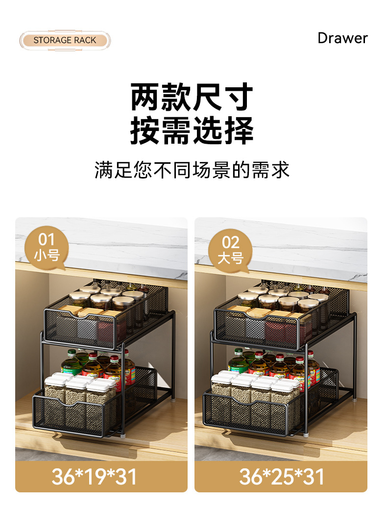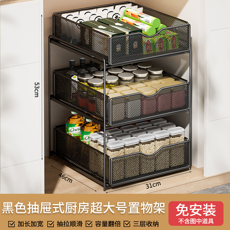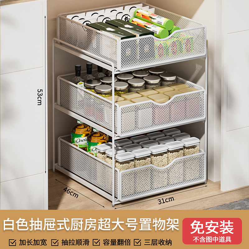 주방 풀아웃 스토리지 랙 캐비닛 계층화 된 선반 더블 레이어 하단 싱크 초딥 서랍 바구니 저장 아티팩트스토어 가기