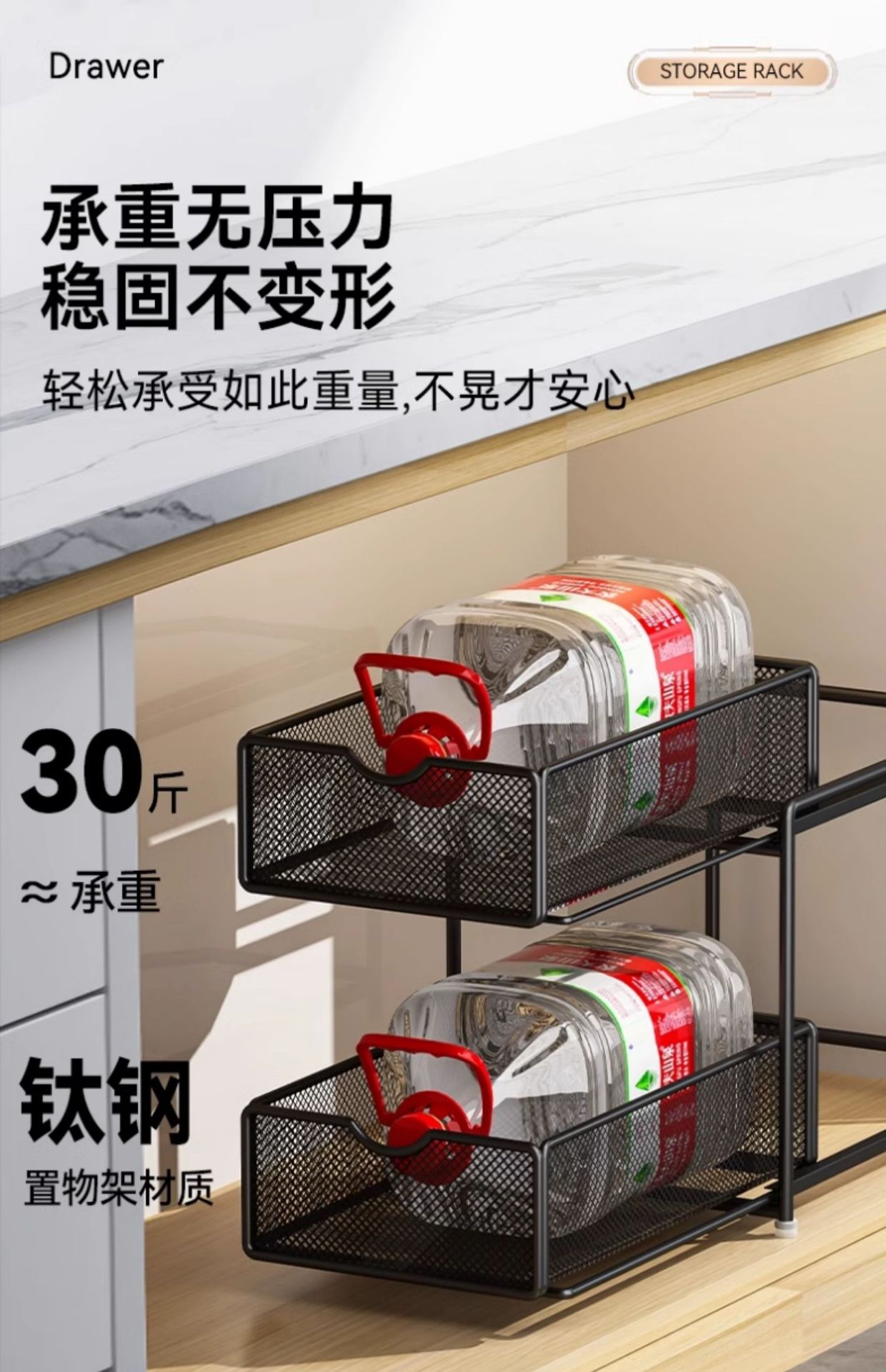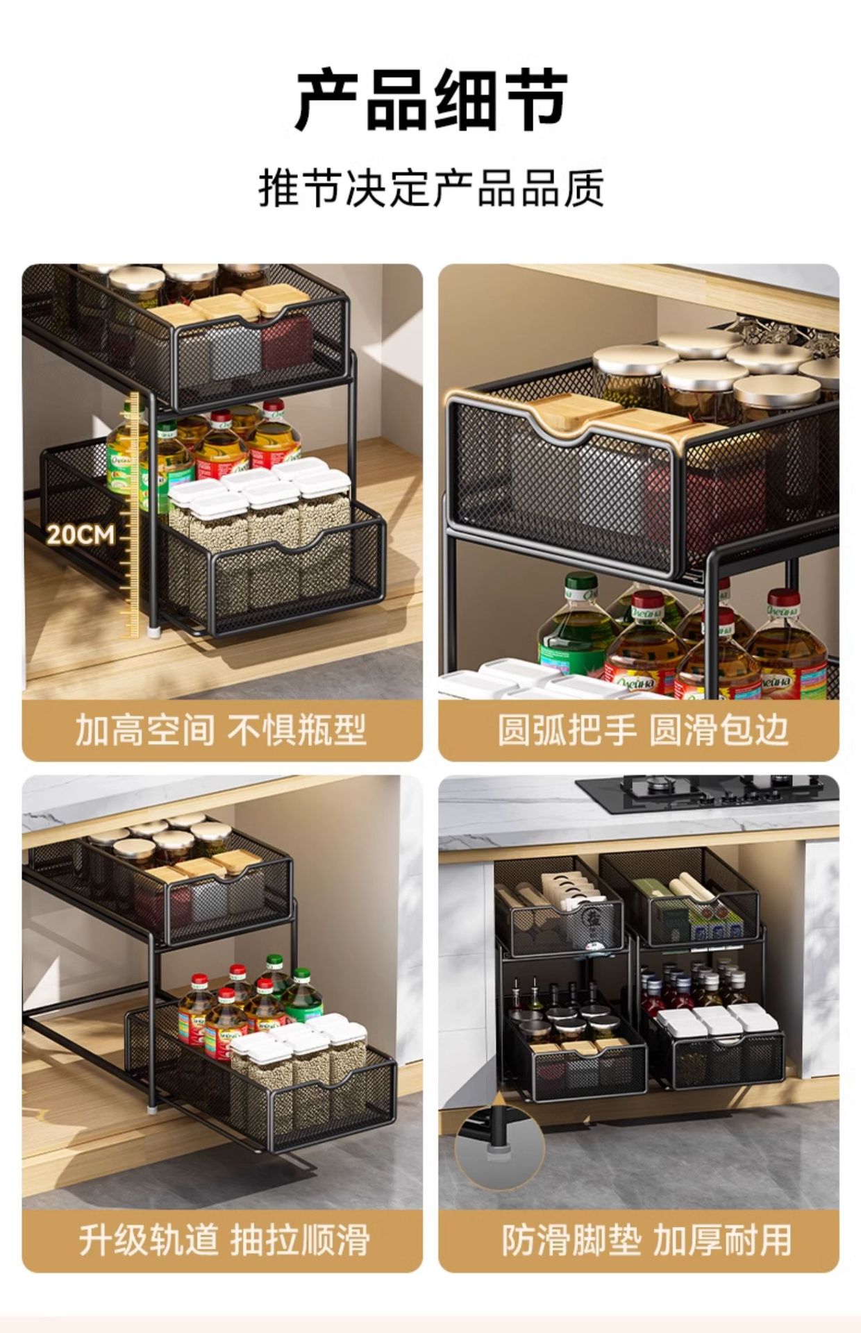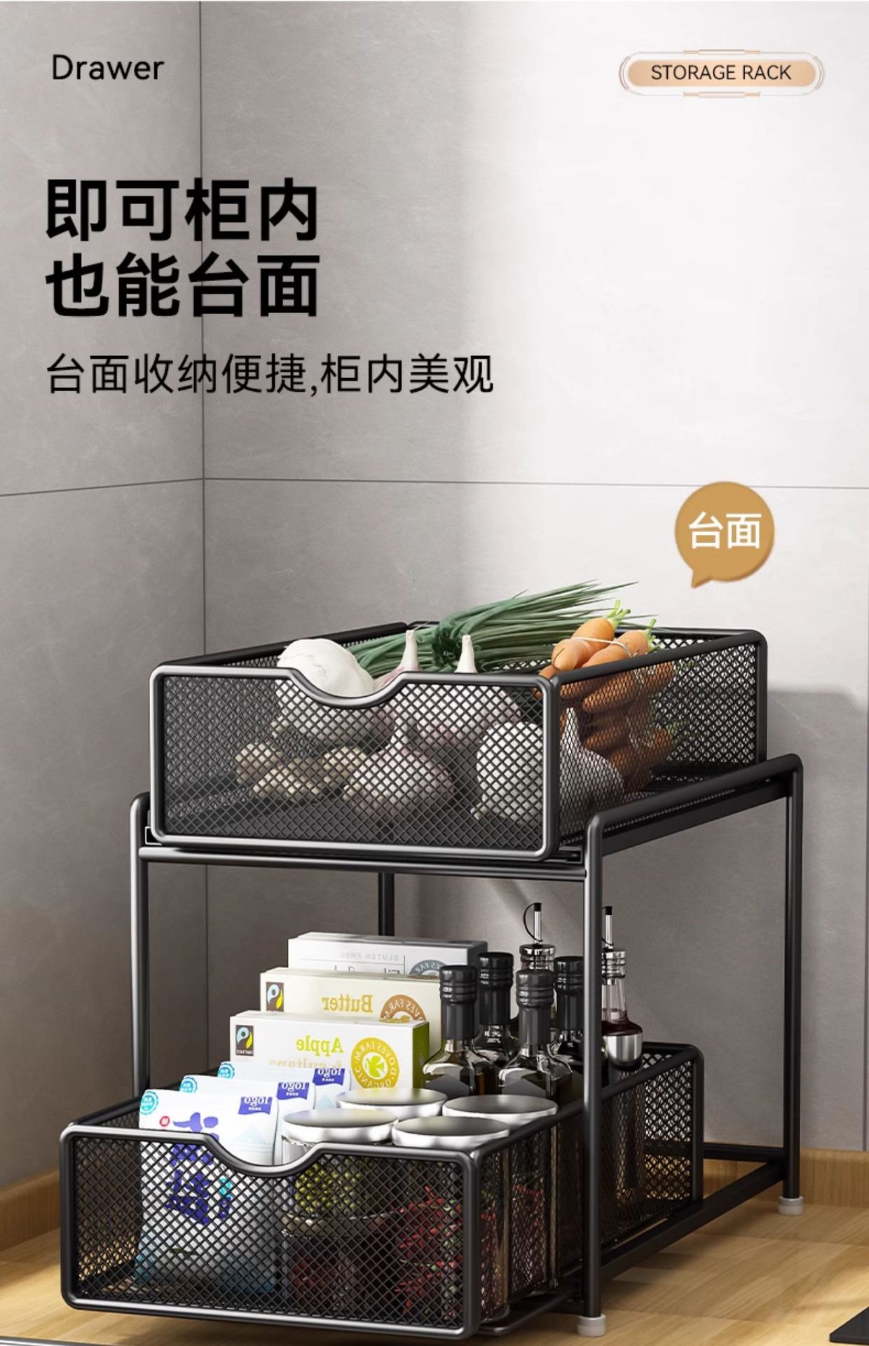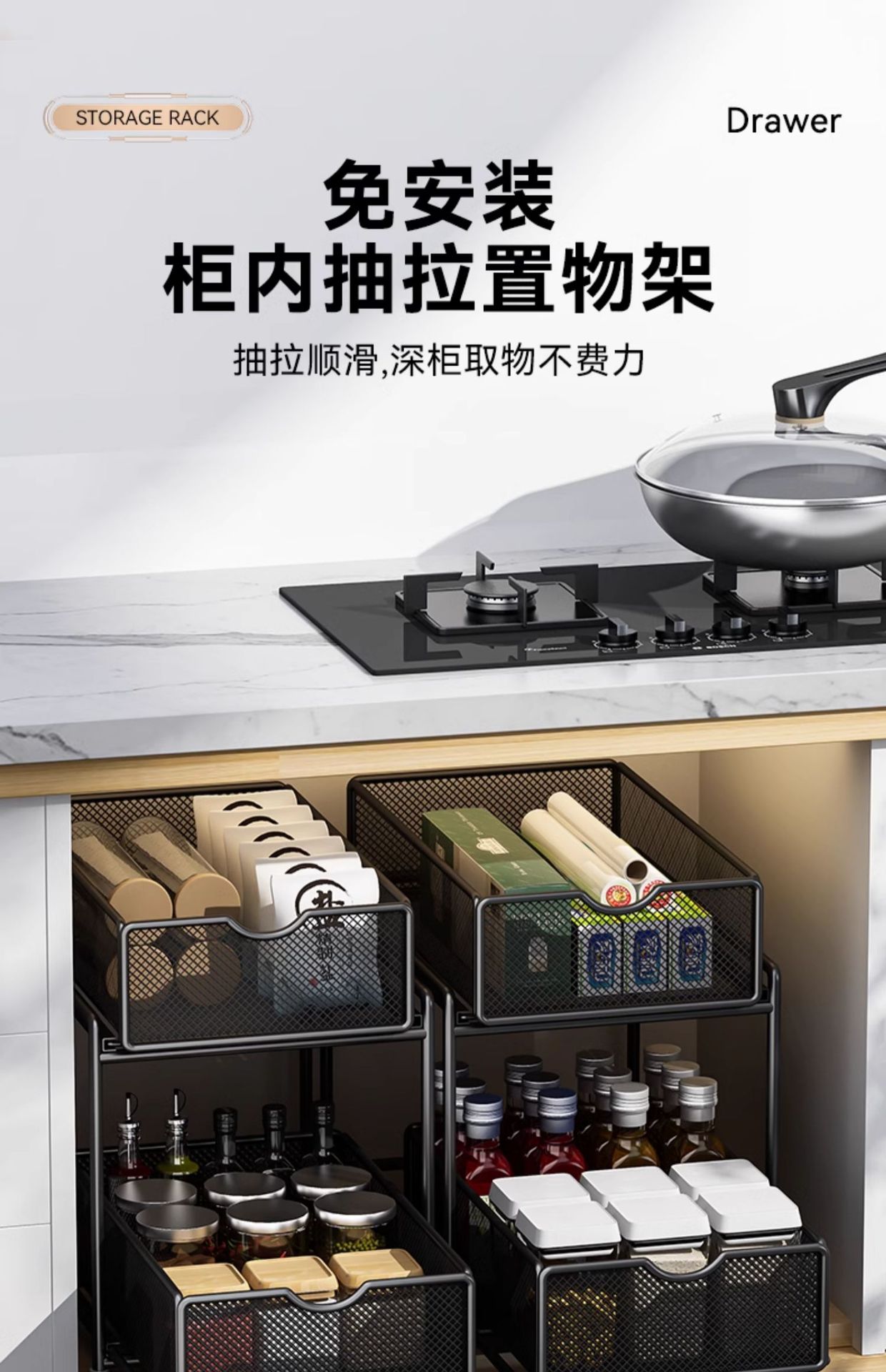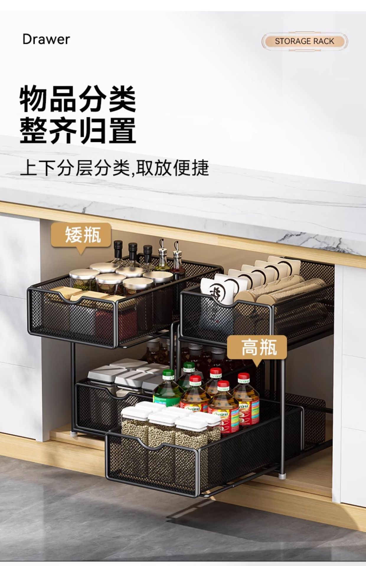 주방 풀아웃 스토리지 랙 캐비닛 계층화 된 선반 더블 레이어 하단 싱크 초딥 서랍 바구니 저장 아티팩트스토어 가기