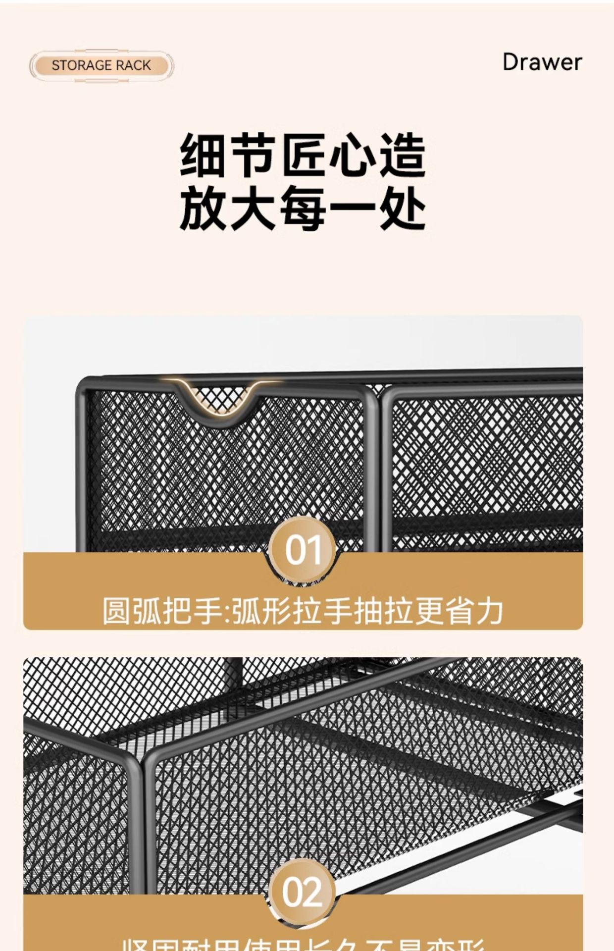 • [야헤이] 심화된 3단 인출식 수납선반 - 특대형.