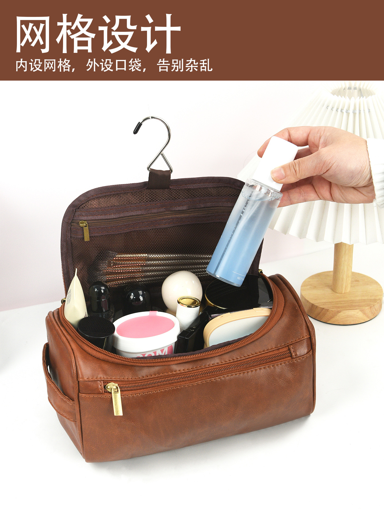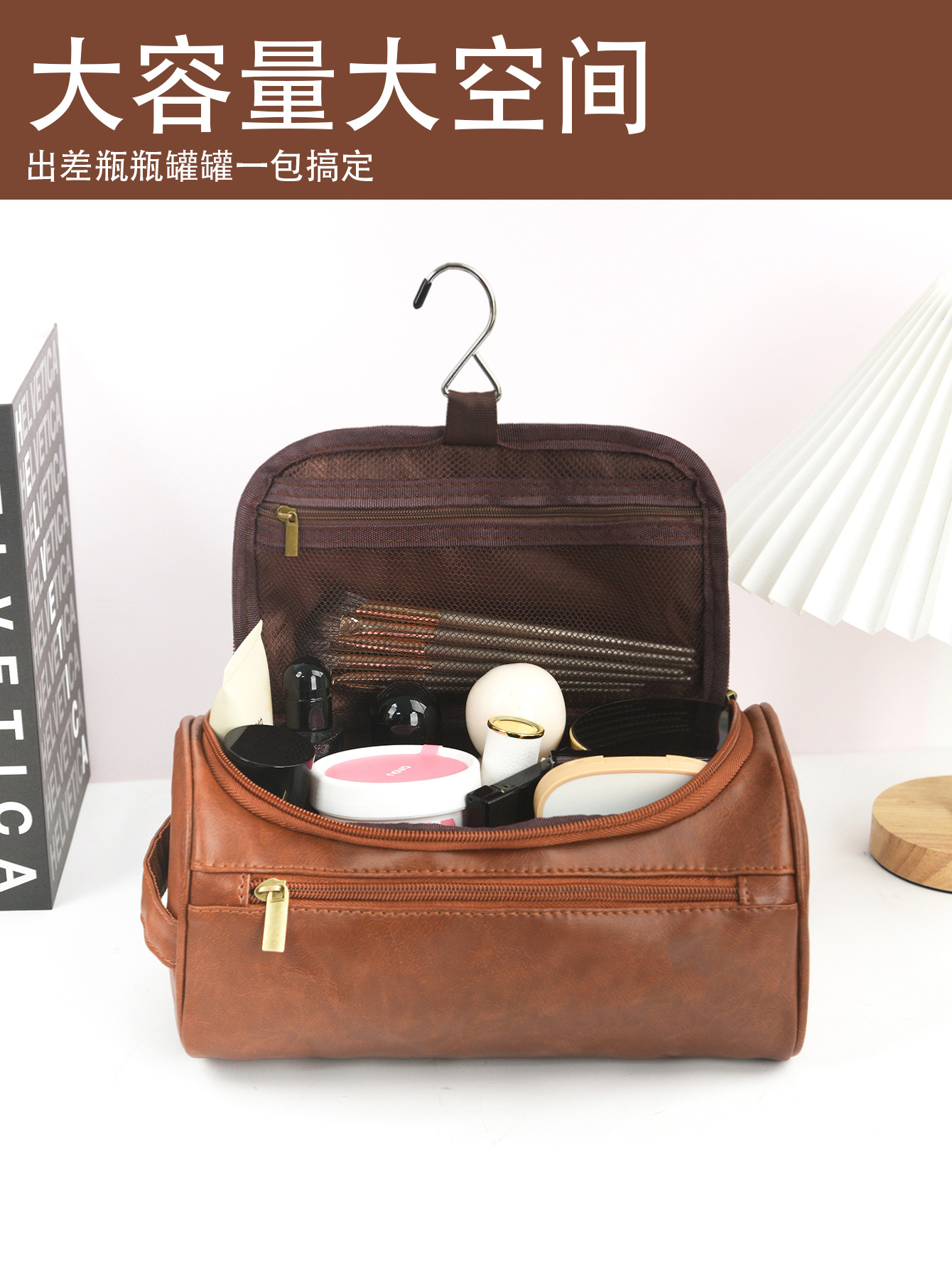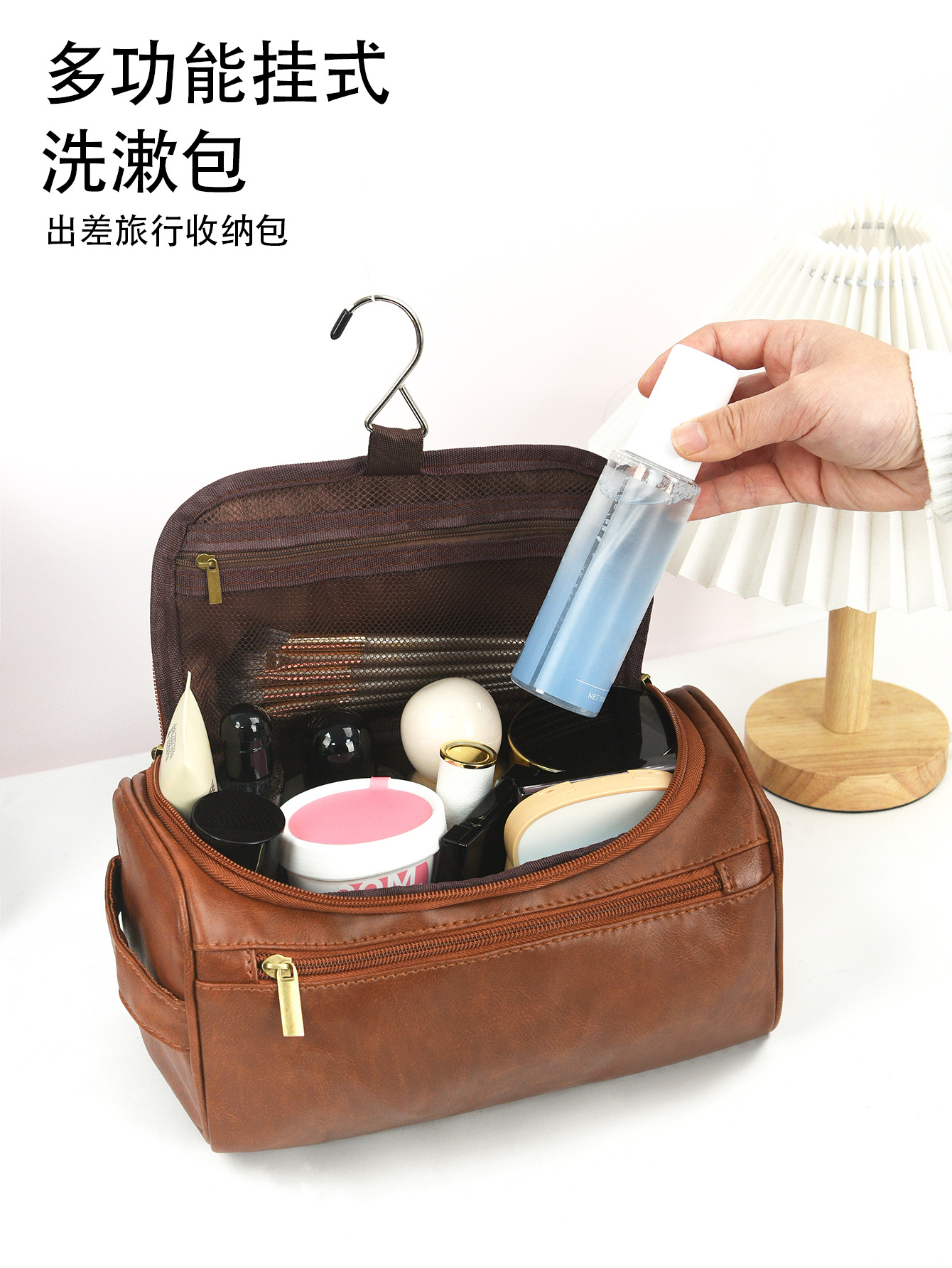 국경 휴대용 PU 가죽 화장품 가방 대용량 방수 보관 여행 세척 가방 다기능 휴대용 보관 가방스토어 가기