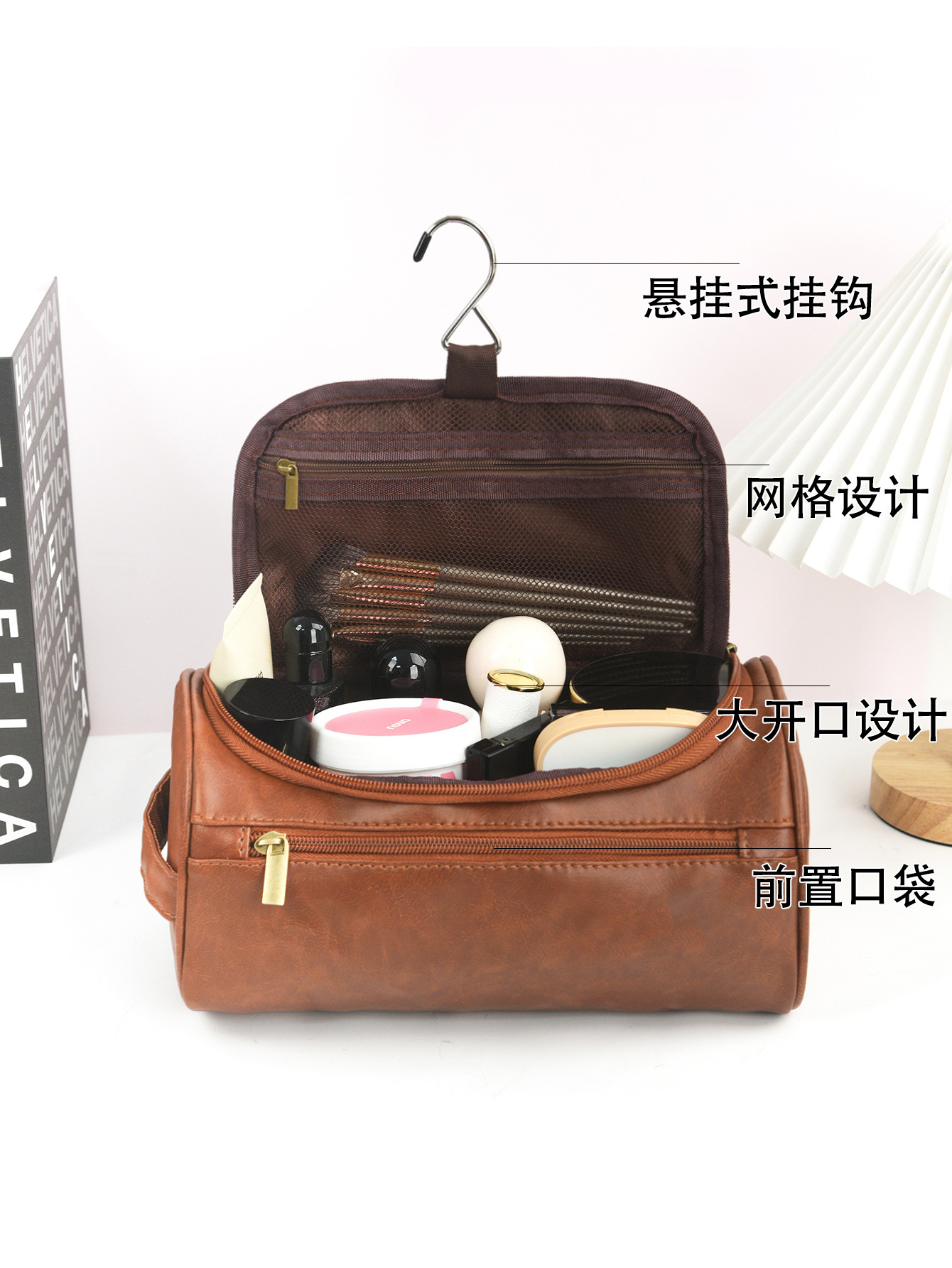 국경 휴대용 PU 가죽 화장품 가방 대용량 방수 보관 여행 세척 가방 다기능 휴대용 보관 가방