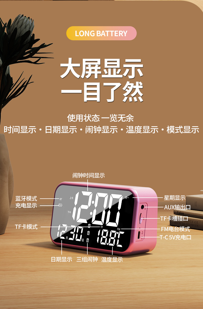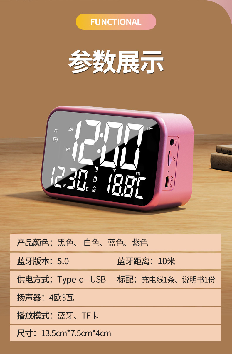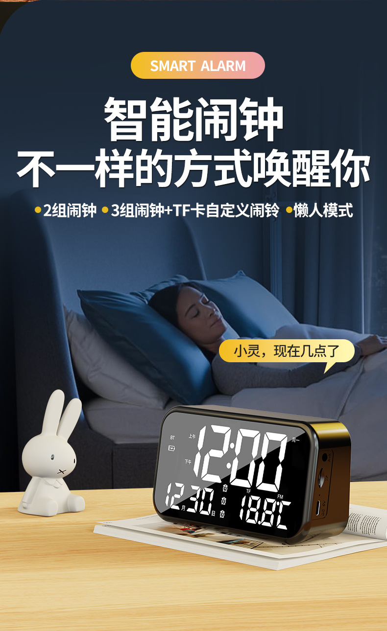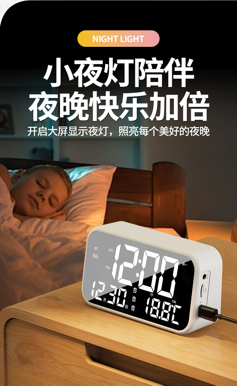 대형 스크린 시계 카드가있는 편리한 블루투스 무선 스피커 미니 미러 소형 오디오 블루투스 스피커 야간 조명스토어 가기