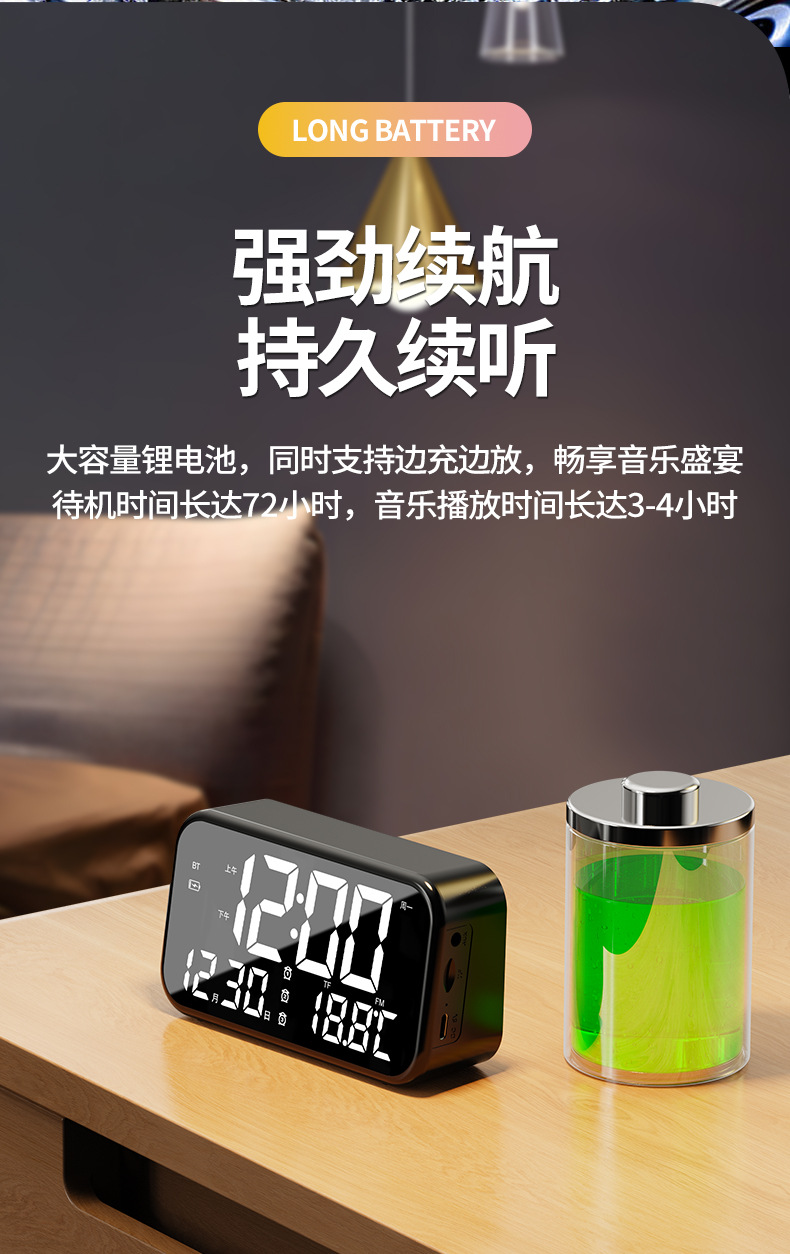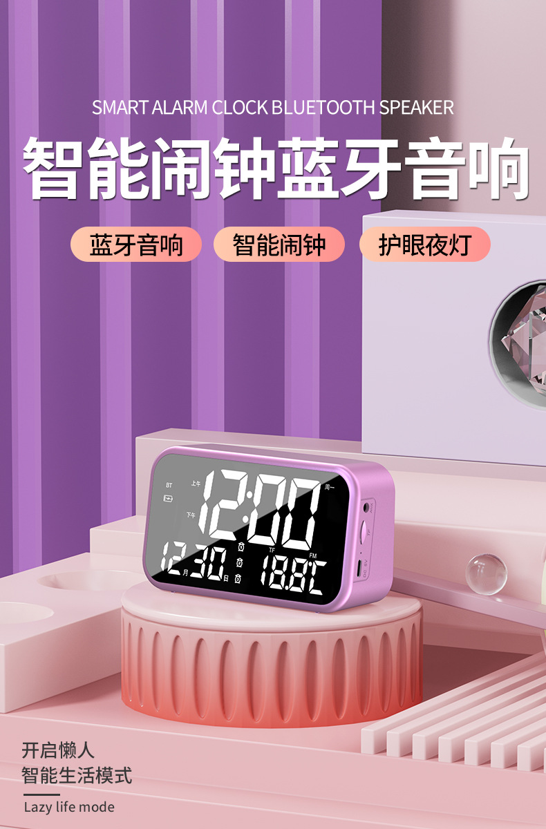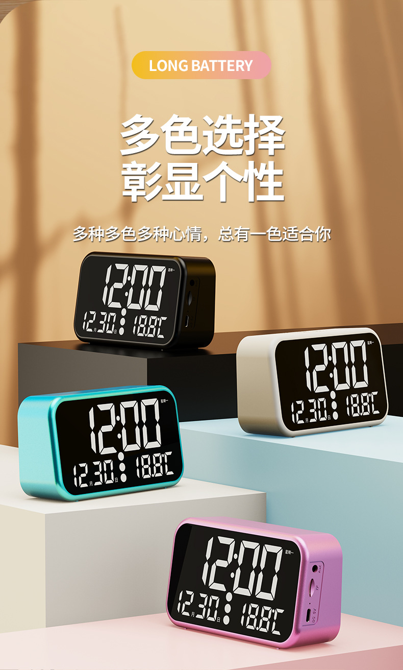 대형 스크린 시계 카드가있는 편리한 블루투스 무선 스피커 미니 미러 소형 오디오 블루투스 스피커 야간 조명