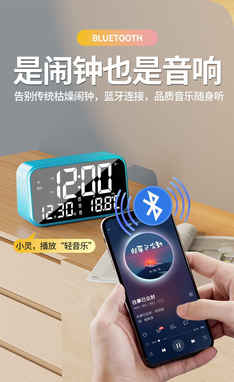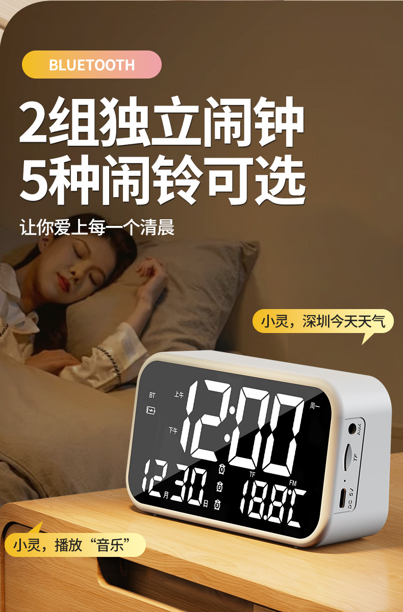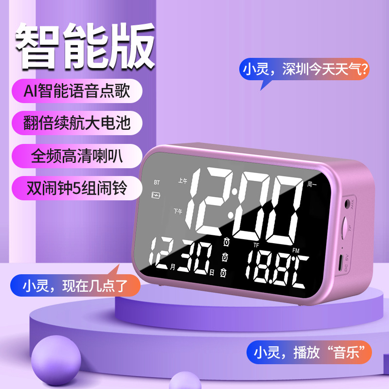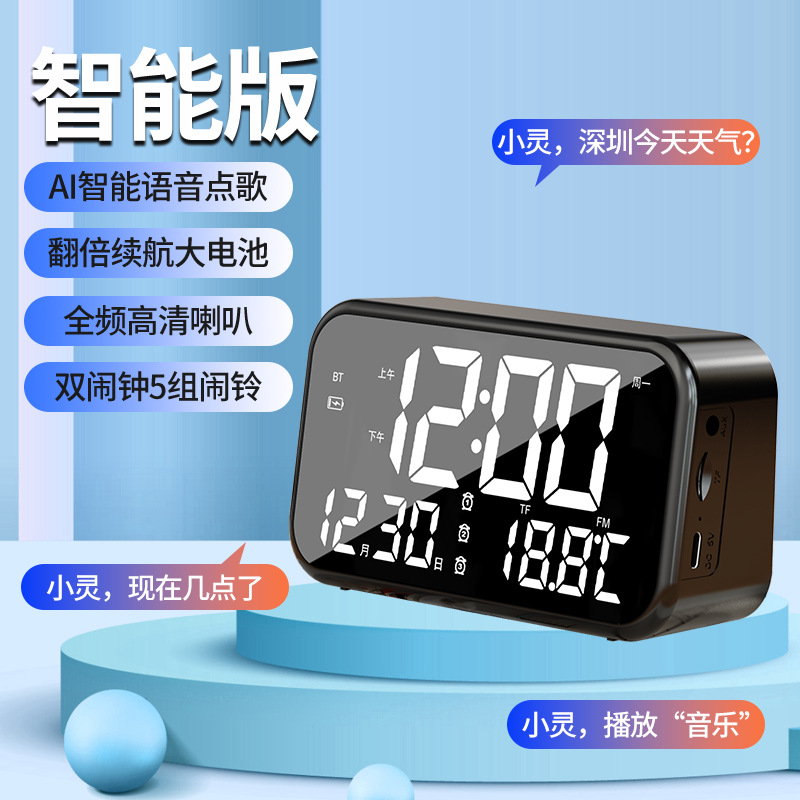 대형 스크린 시계 카드가있는 편리한 블루투스 무선 스피커 미니 미러 소형 오디오 블루투스 스피커 야간 조명