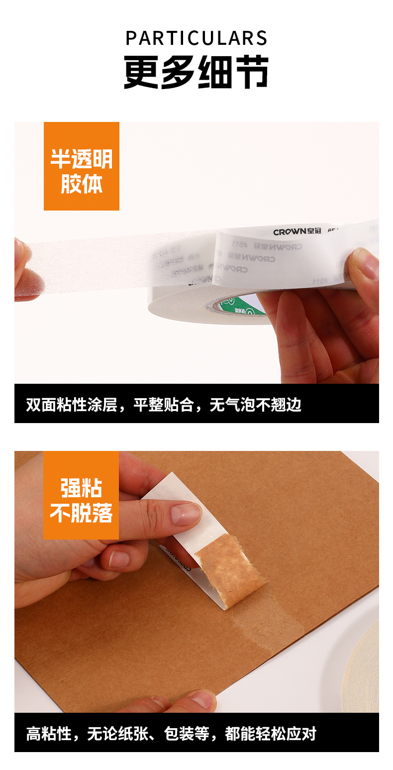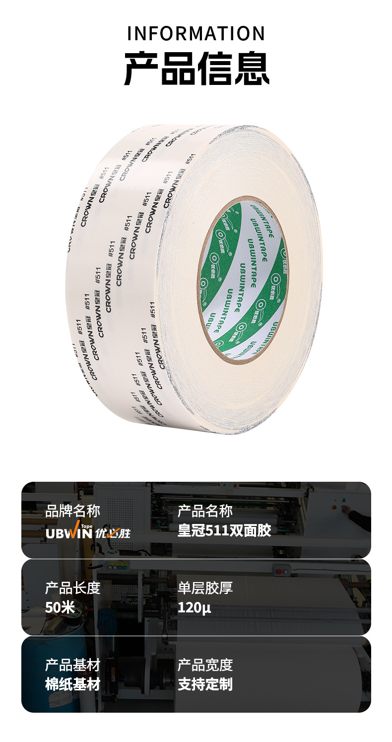 크라운 511 높은 접착 쉬운 찢어짐 양면 테이프 면 종이 양면 테이프 고온 저항 테이프 공장 직접 도매