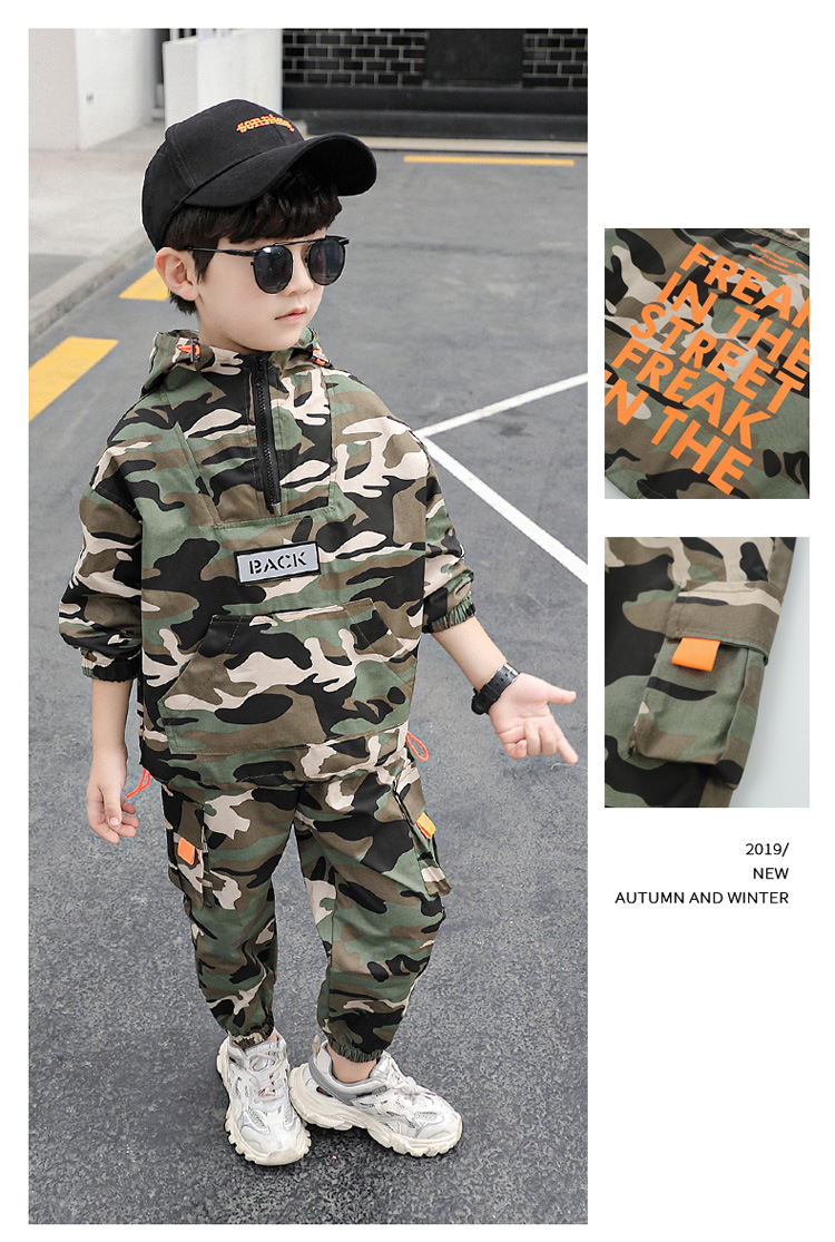 소년 봄 의류 세트 2025 새로운 어린이 위장 의류 봄 스포츠 투피스 세트 외국 잘 생긴 아기 봄과 가을