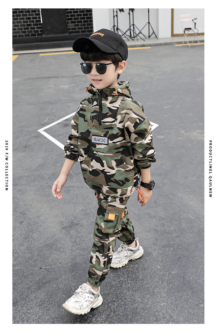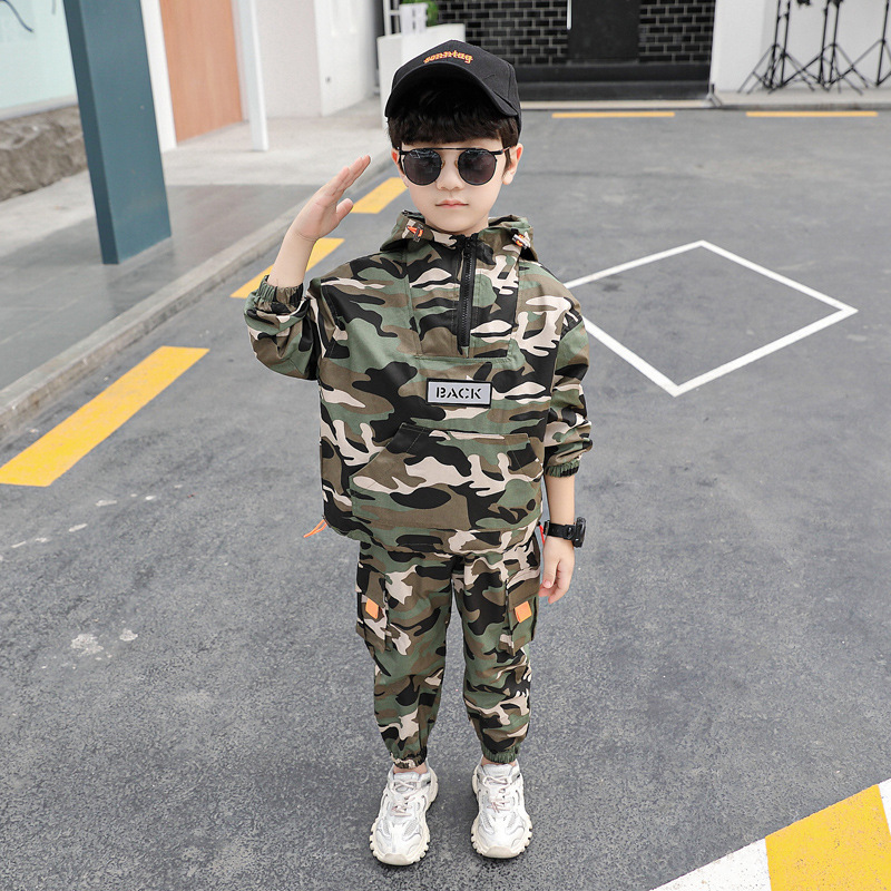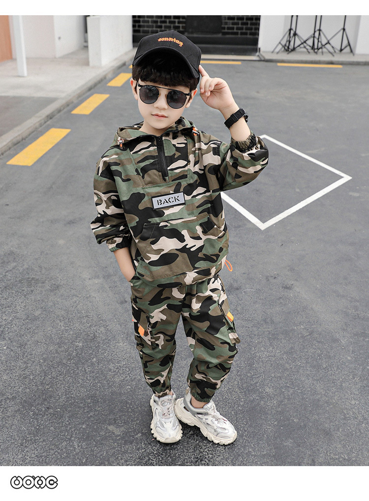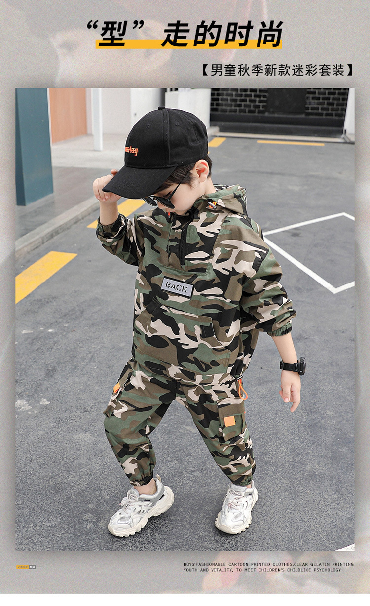 소년 봄 의류 세트 2025 새로운 어린이 위장 의류 봄 스포츠 투피스 세트 외국 잘 생긴 아기 봄과 가을스토어 가기