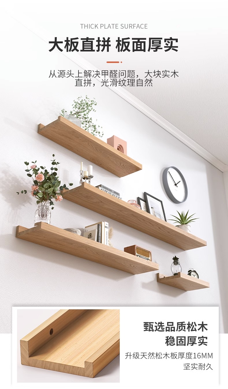 # 벽 저장 랙 단단한 나무 평면 보드 TV 배경 벽 선반 저장 선반 매달려 벽 디스플레이 구획
