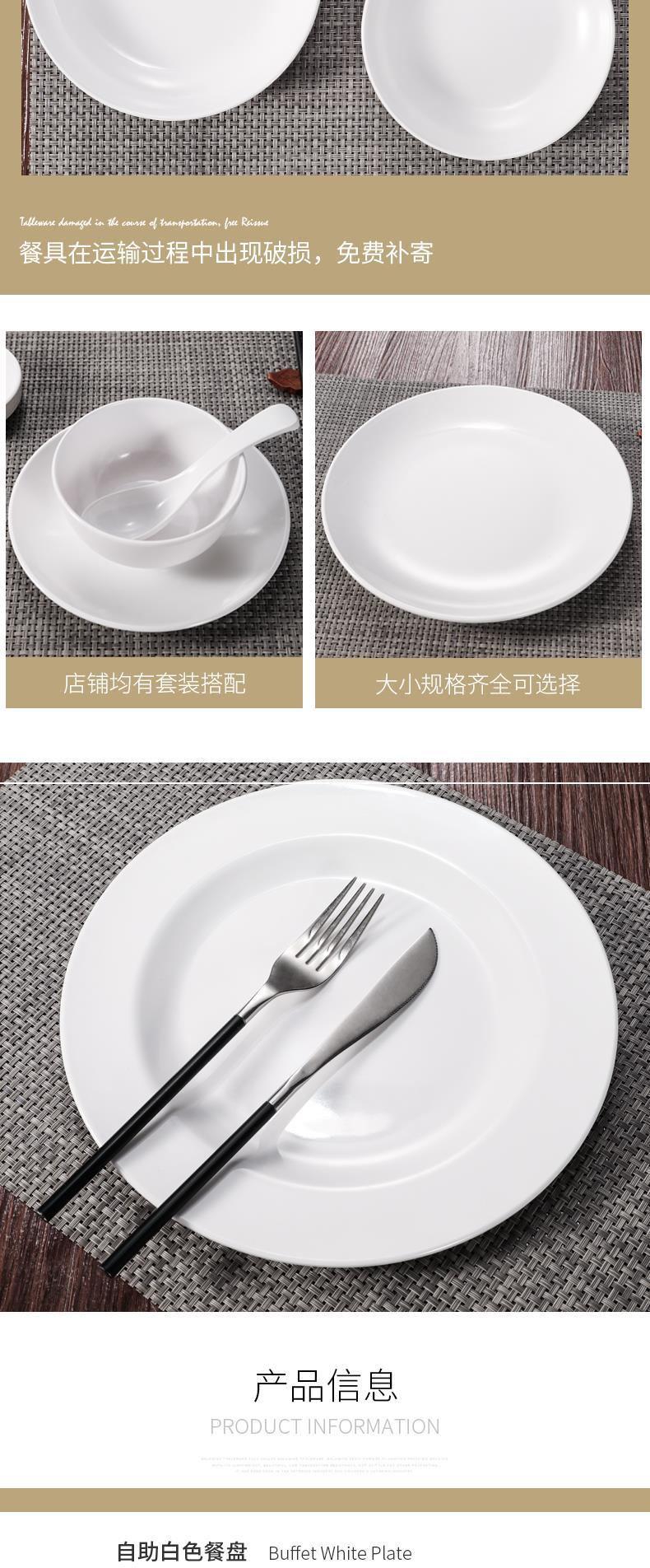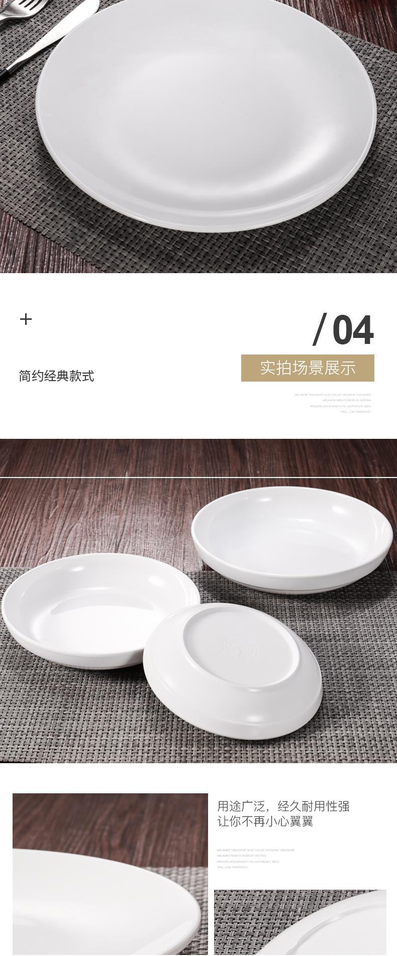 밀라민 라운드 플레이트 화이트 플라스틱 모조 도자기 호텔 대형 디스크 레스토랑 뼈 접시 접시 요리 쌀 요리 상업적 사용스토어 가기