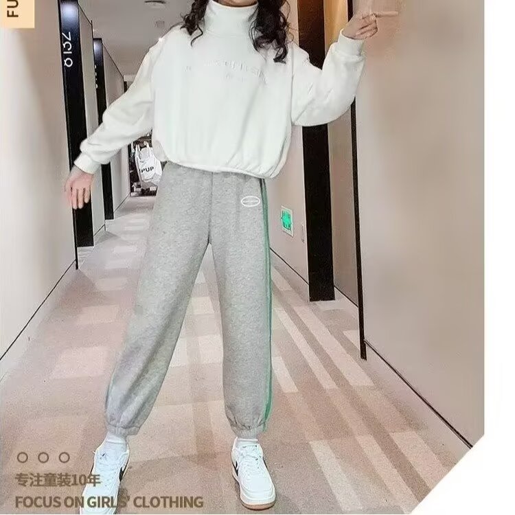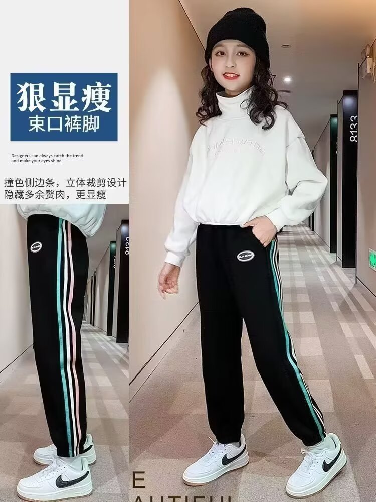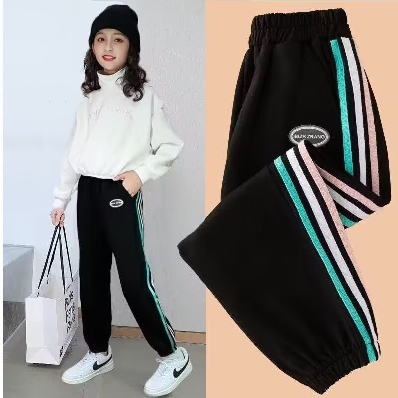 소녀 스포츠 바지 봄과 가을 2025 새로운 스타일 여자 다웨이 바지 번들 발 스타일 어린이 캐주얼 바지스토어 가기