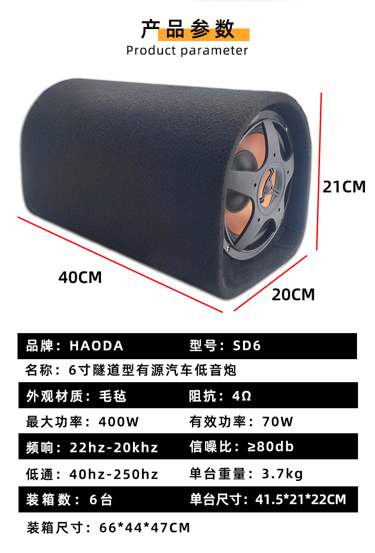 도매 자동차 오디오 수정 터널 총 자동차 서브 우퍼 6 인치 실린더 12V 고출력 액티브 스피커