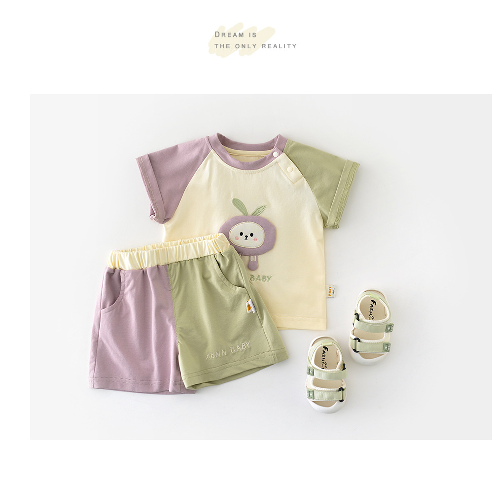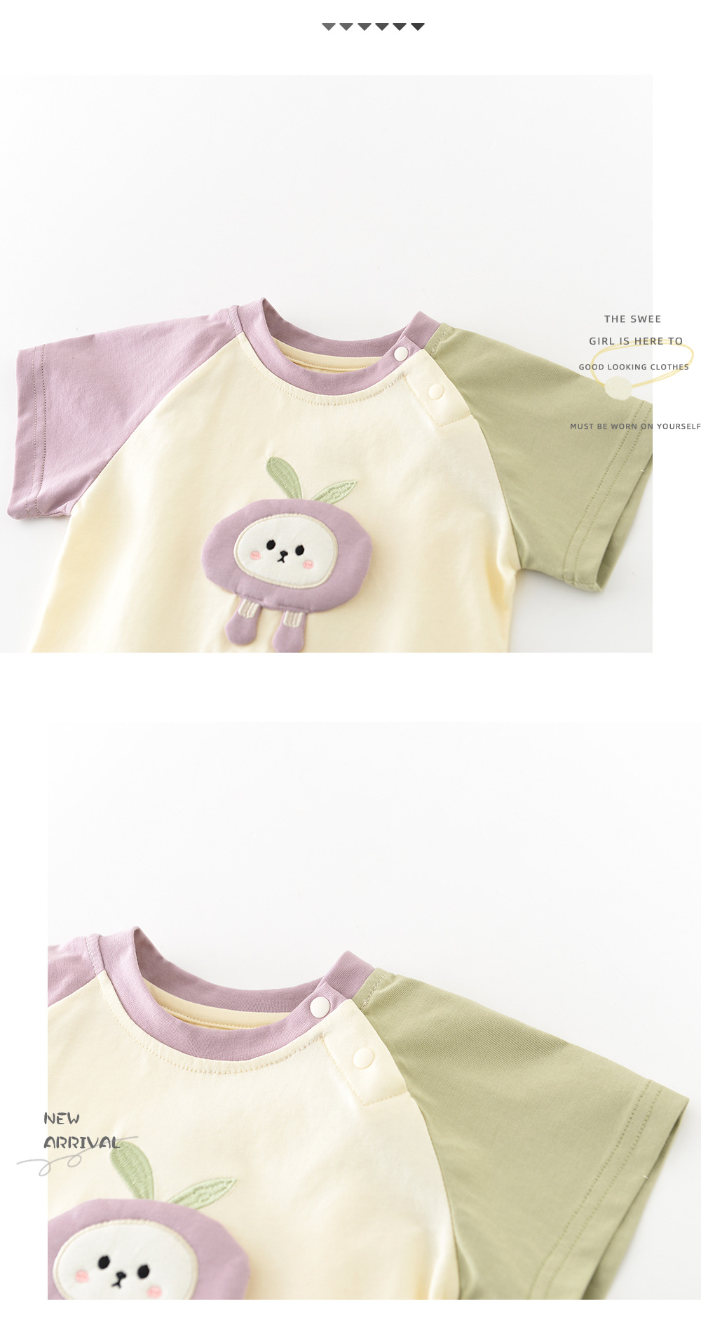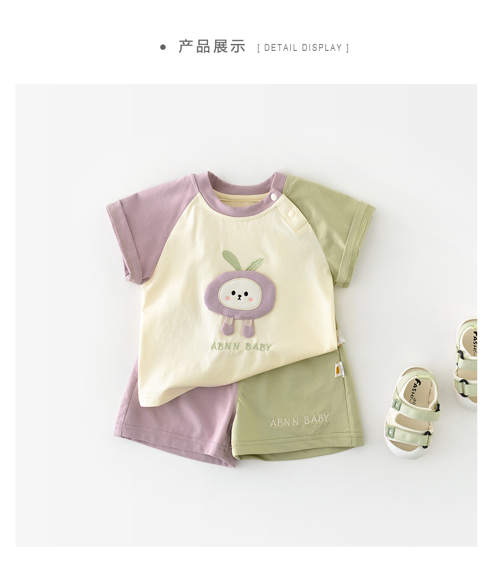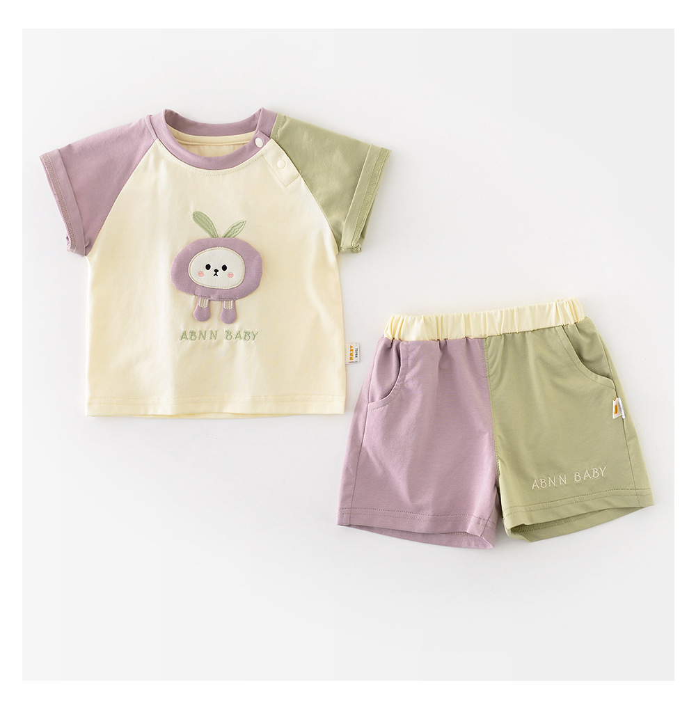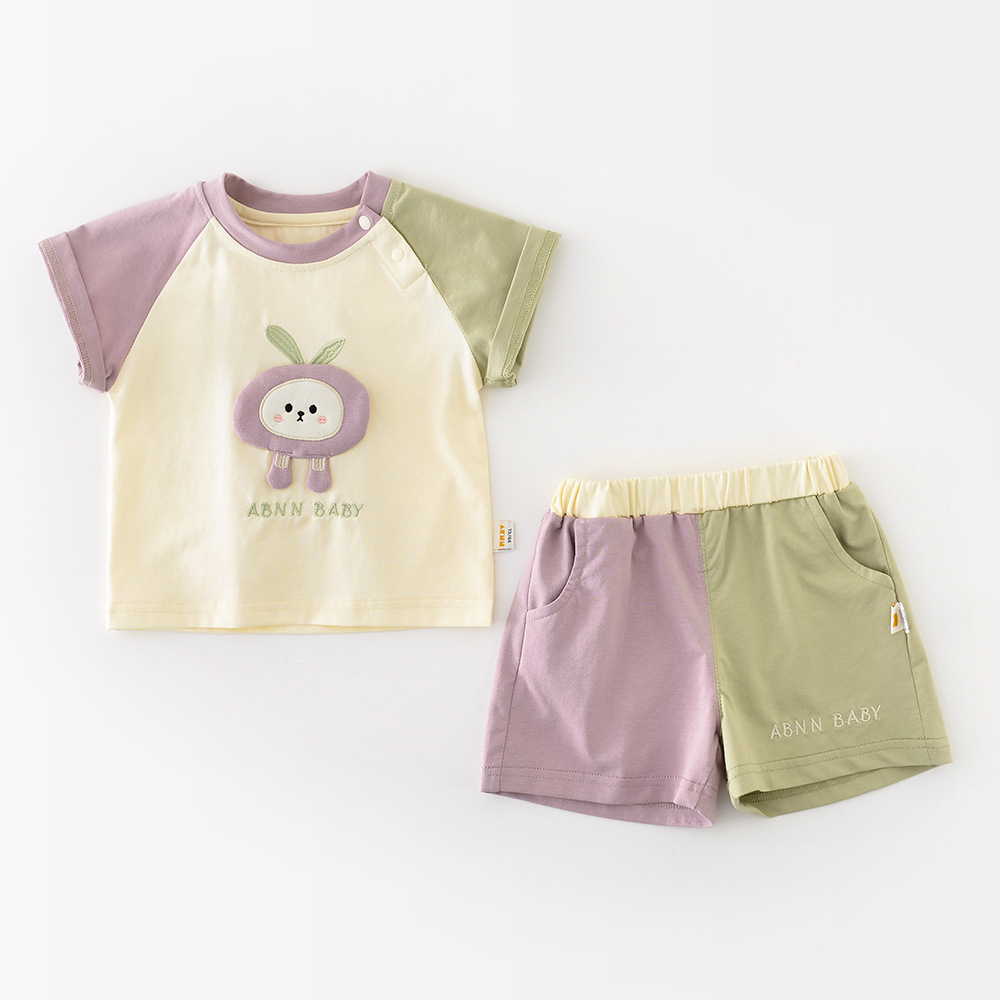 2025 년 유지 여름 어린이 스티칭 라글란 짧은 소매 세트 아기 만화 가지 투피스 52723