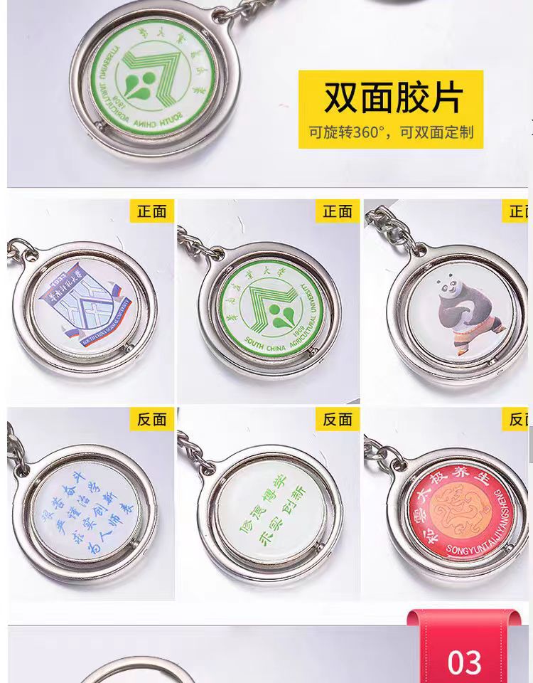 금속 라운드 회전 키 체인 학교 엠블럼 로고 조각 맞춤 선물 양면 크리스탈 아크릴 대학 펜던트