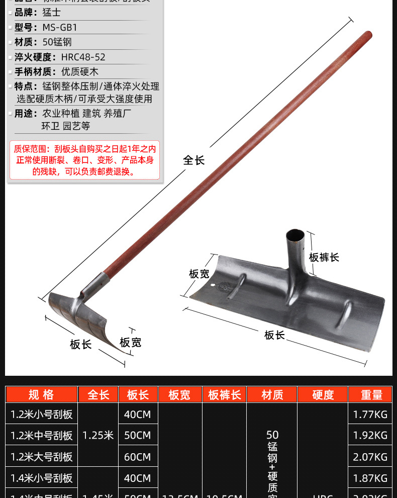 • 대형 스크레이퍼 + 1.2m 나무 손잡이