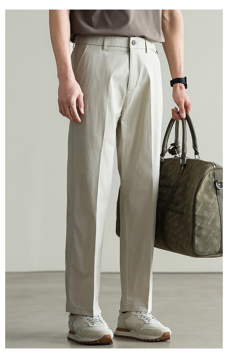 면화 혼합 탄성 허리 테이퍼 자른 바지 남자 2025 봄 통근 비즈니스 캐주얼 바지
