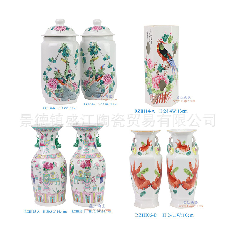 产 品 名 称:手绘粉彩花鸟花瓶罐子帽筒