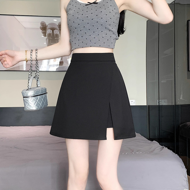 블랙 스플릿 세트 스커트 여성 봄과 여름 2025 새로운 도착 작은 높은 허리 컬로 트 슬리밍 A 라인 스커트 스커트스토어 가기