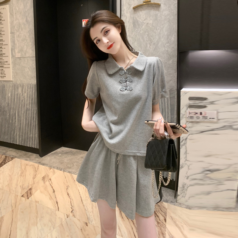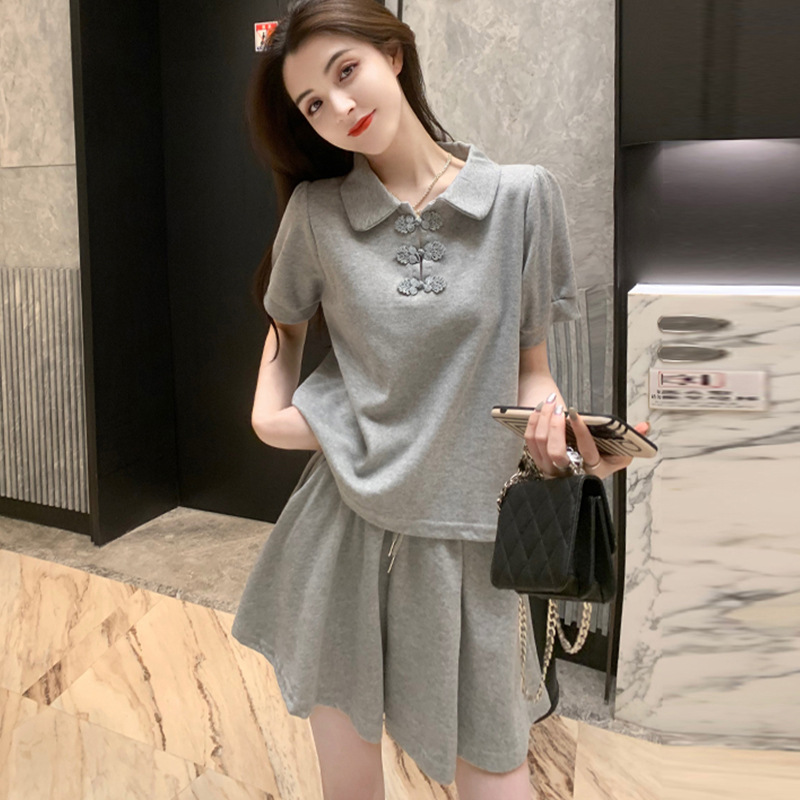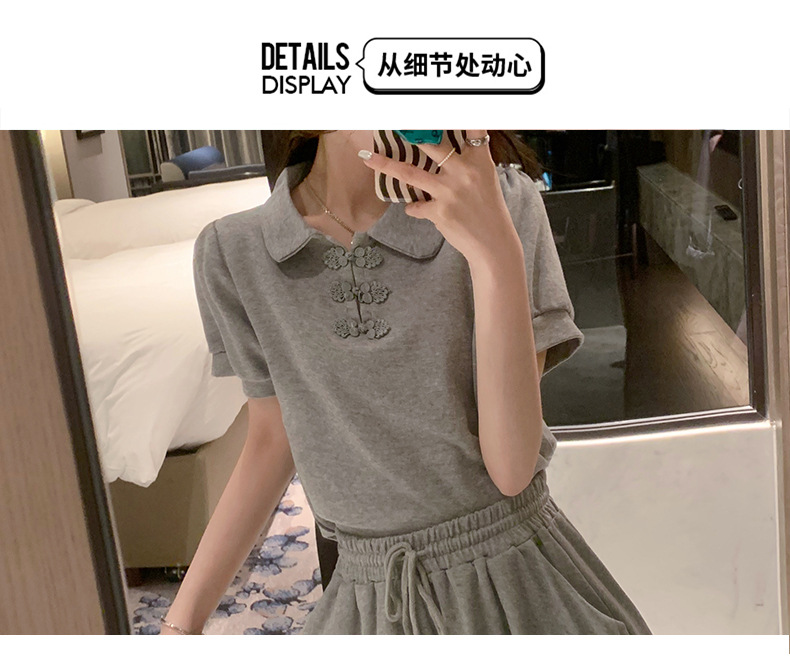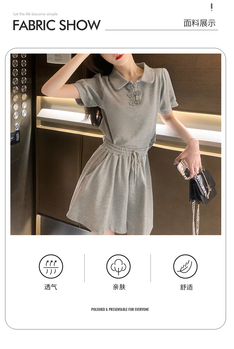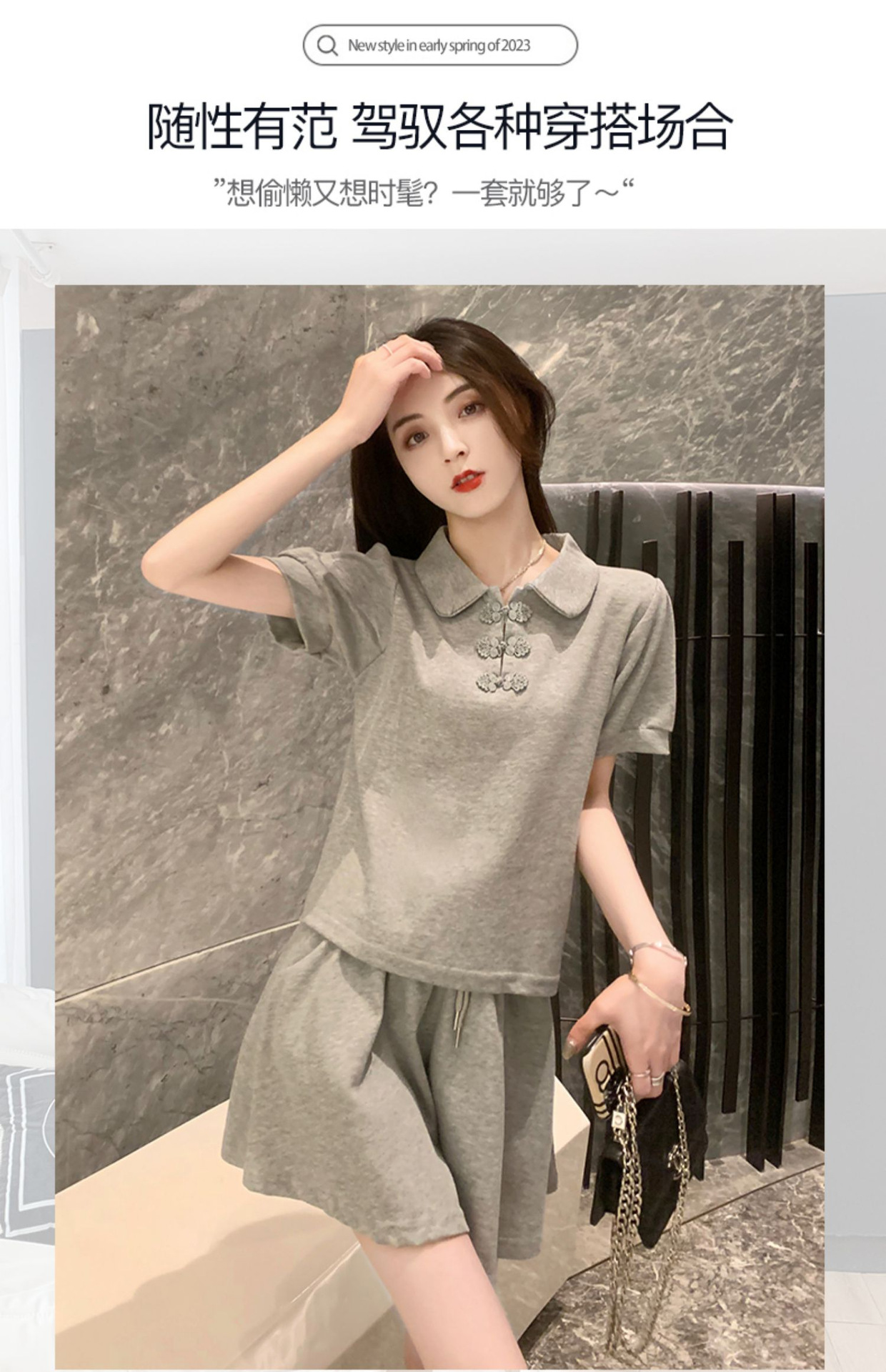 Guofeng 버튼 스포츠 세트 여성 여름 유행 연령 감소 작은 폴로 셔츠 반바지 캐주얼 투피스 세트스토어 가기