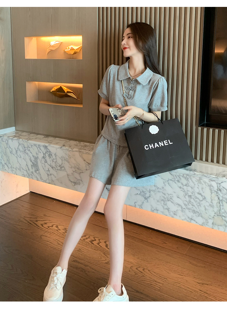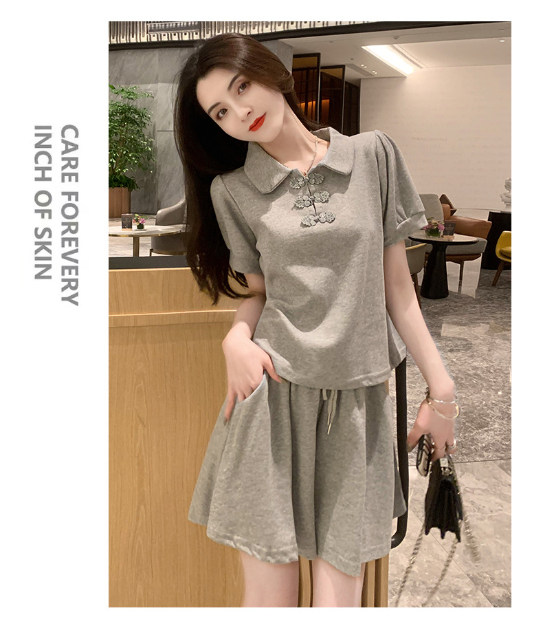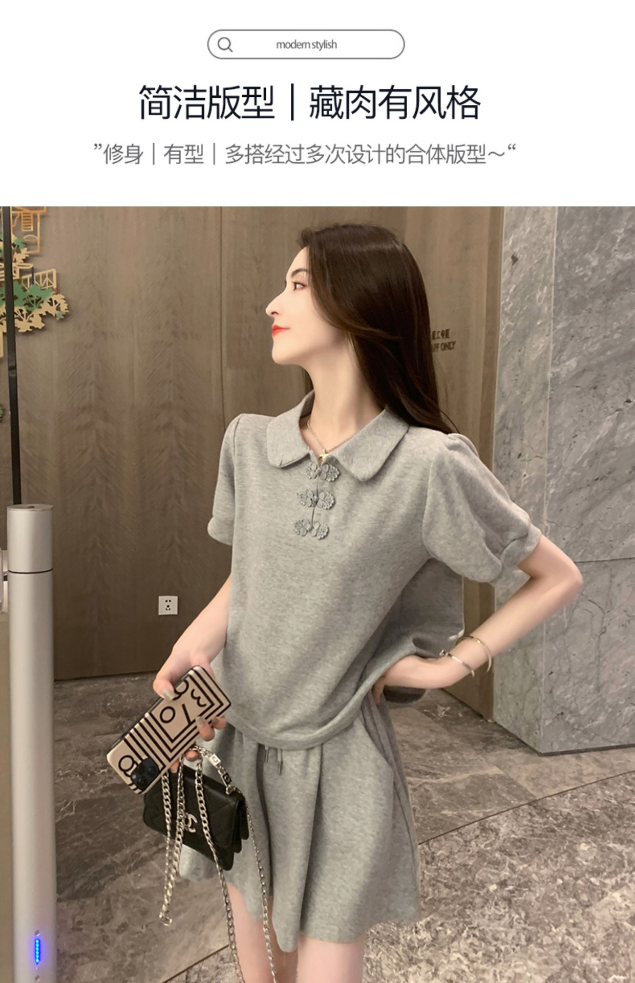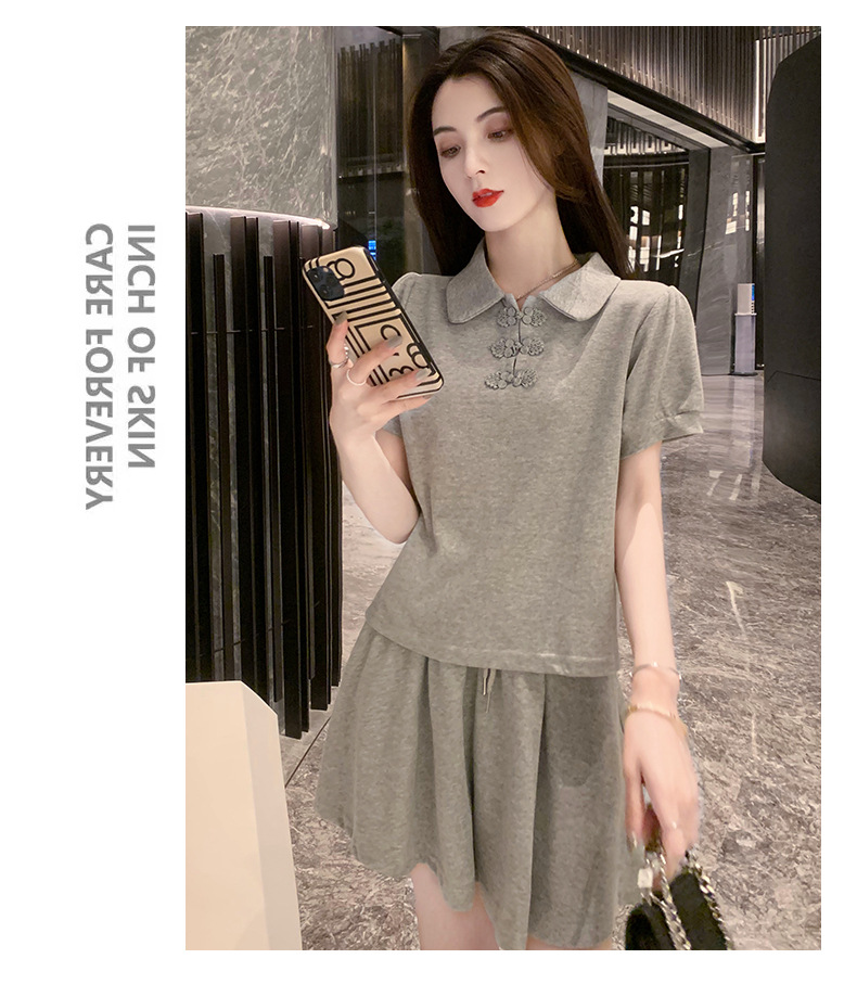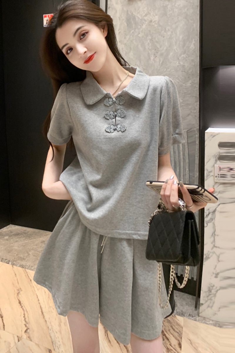Guofeng 버튼 스포츠 세트 여성 여름 유행 연령 감소 작은 폴로 셔츠 반바지 캐주얼 투피스 세트스토어 가기