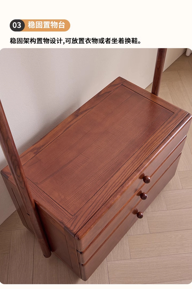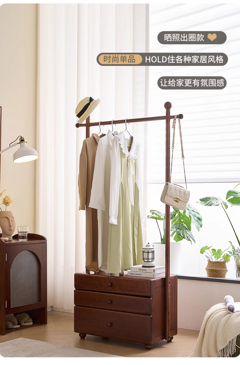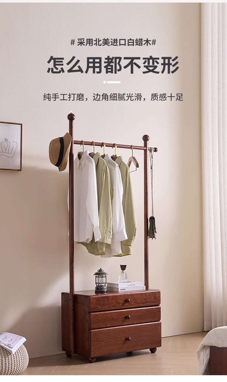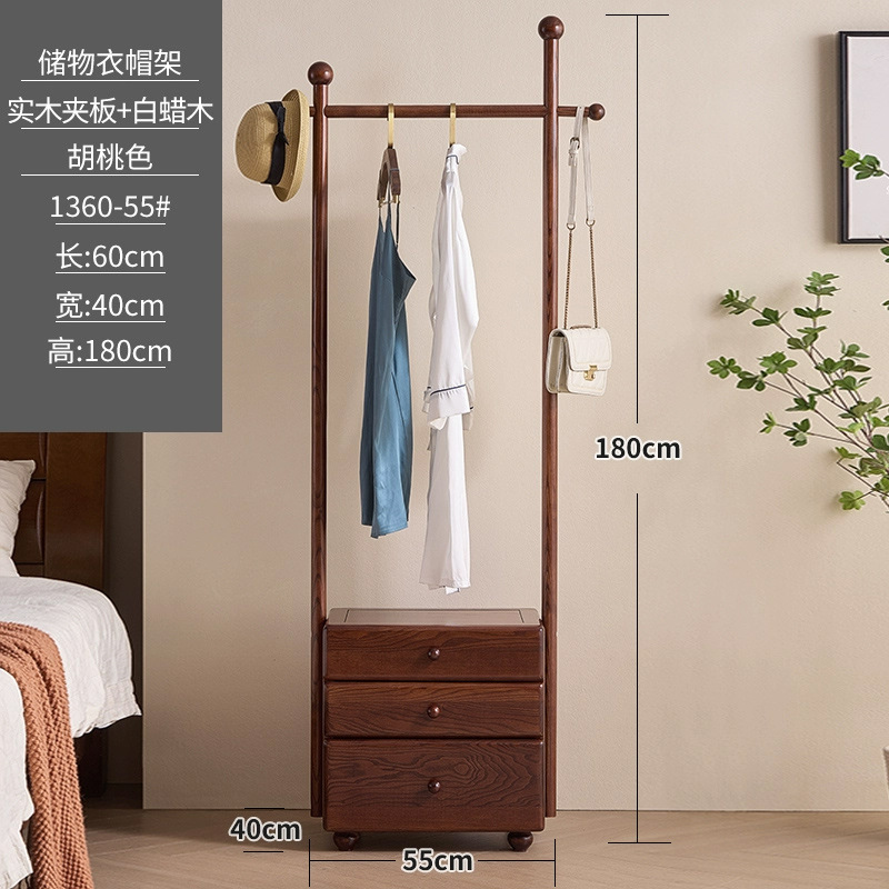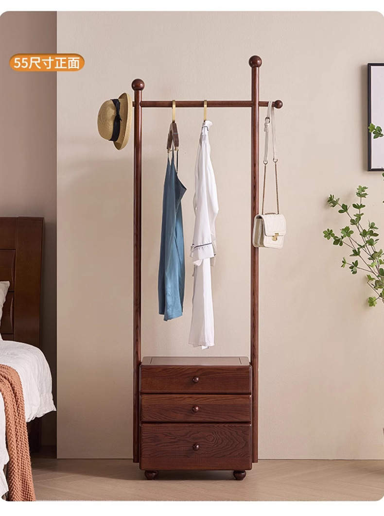 단단한 나무 침대 옆 테이블 걸이 통합 다기능 코트 랙 가구 입구 문 서랍 저장 옷 랙스토어 가기