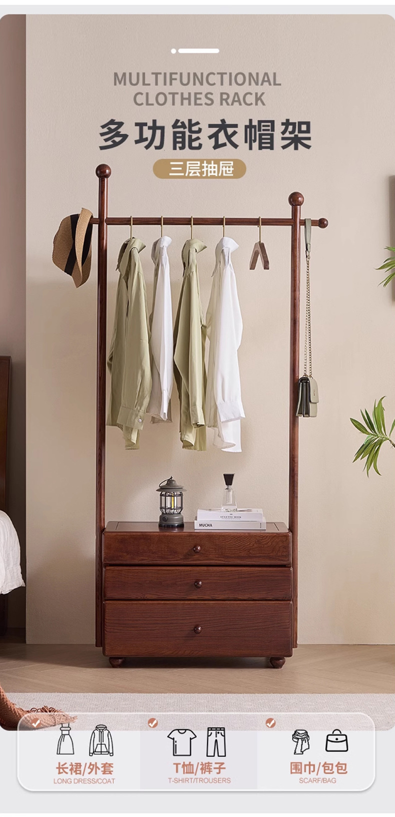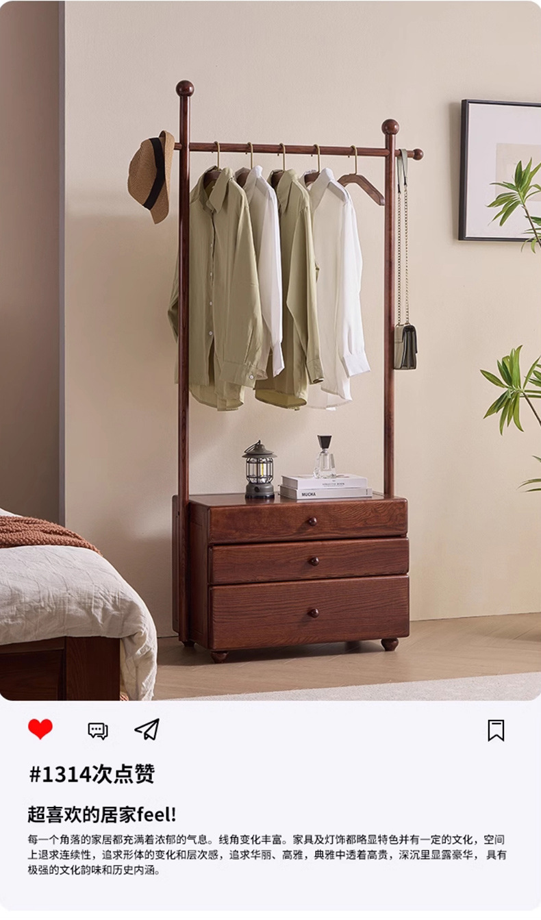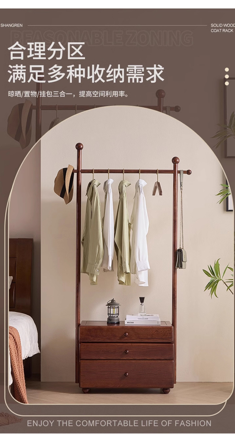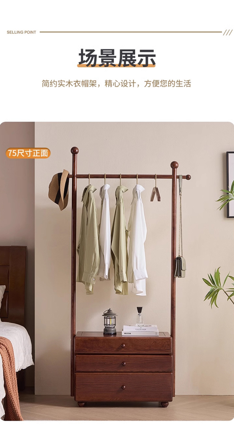 단단한 나무 침대 옆 테이블 걸이 통합 다기능 코트 랙 가구 입구 문 서랍 저장 옷 랙스토어 가기